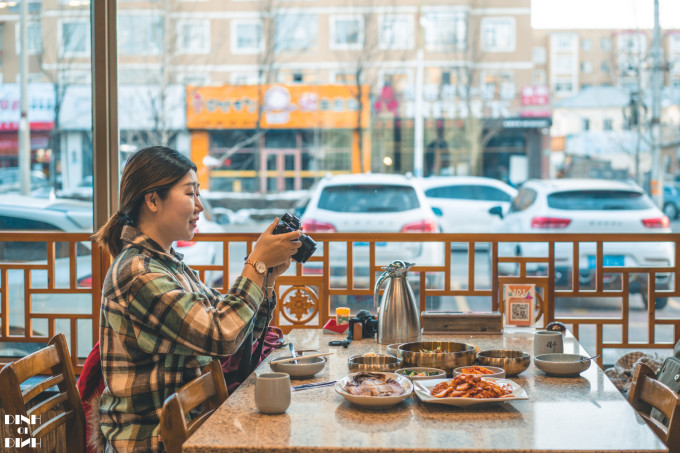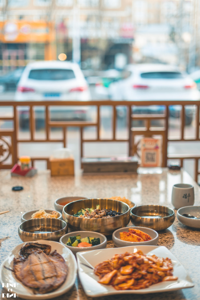 因为中午都没吃,我们把行李一丢就马上去干饭,在几家店里,我先选了全州拌饭,也许是因为饿了的关系,当然也因为真的很好吃,来到珲春的第一餐吃得太开心了。真的太好吃了我们到的时候已经三点了,本来还想着去找个地方拍日落,结果吃着吃着天就黑了。