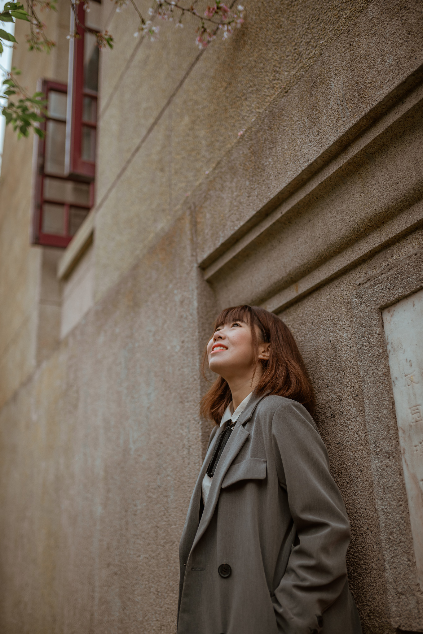 当然,普通游客是进不去的哦,因为这里是用作学生宿舍的,樱花季里,你看,总有几只顽皮的樱花不经意的就探进了窗口。