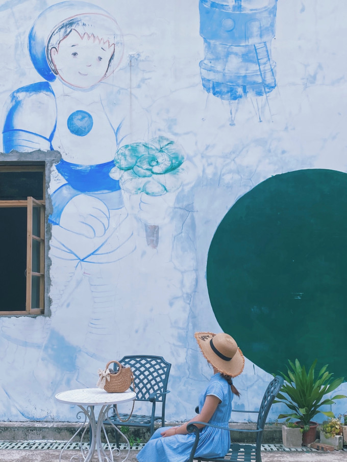 园区入驻的商户不多,大多数是艺术家的工作室,有几幅壁画是当时印染女工的工作场景,适合摆拍。