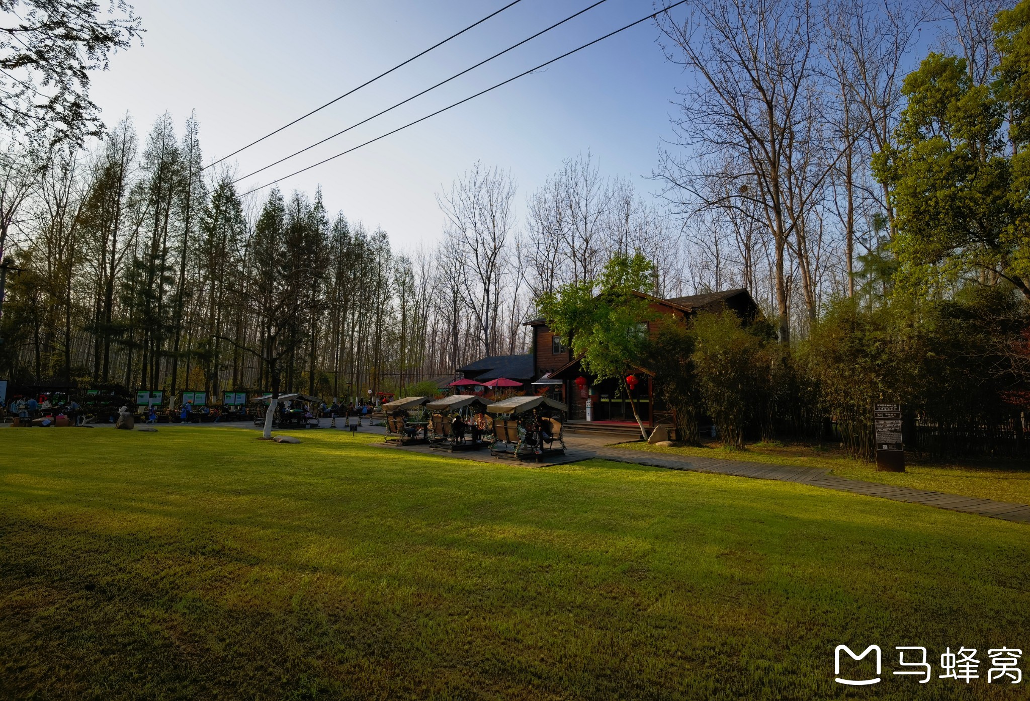 林间木屋隐入密林丛中。推门而入,田园式的窗帘,角落里的壁炉,仿佛走进安徒生的童话。屋外梅、兰、菊、竹四圃,旁置科普长廊,别有一番风味。三五好友,围坐细品"树巢咖啡",谈天论地,不经意间日落西山去。