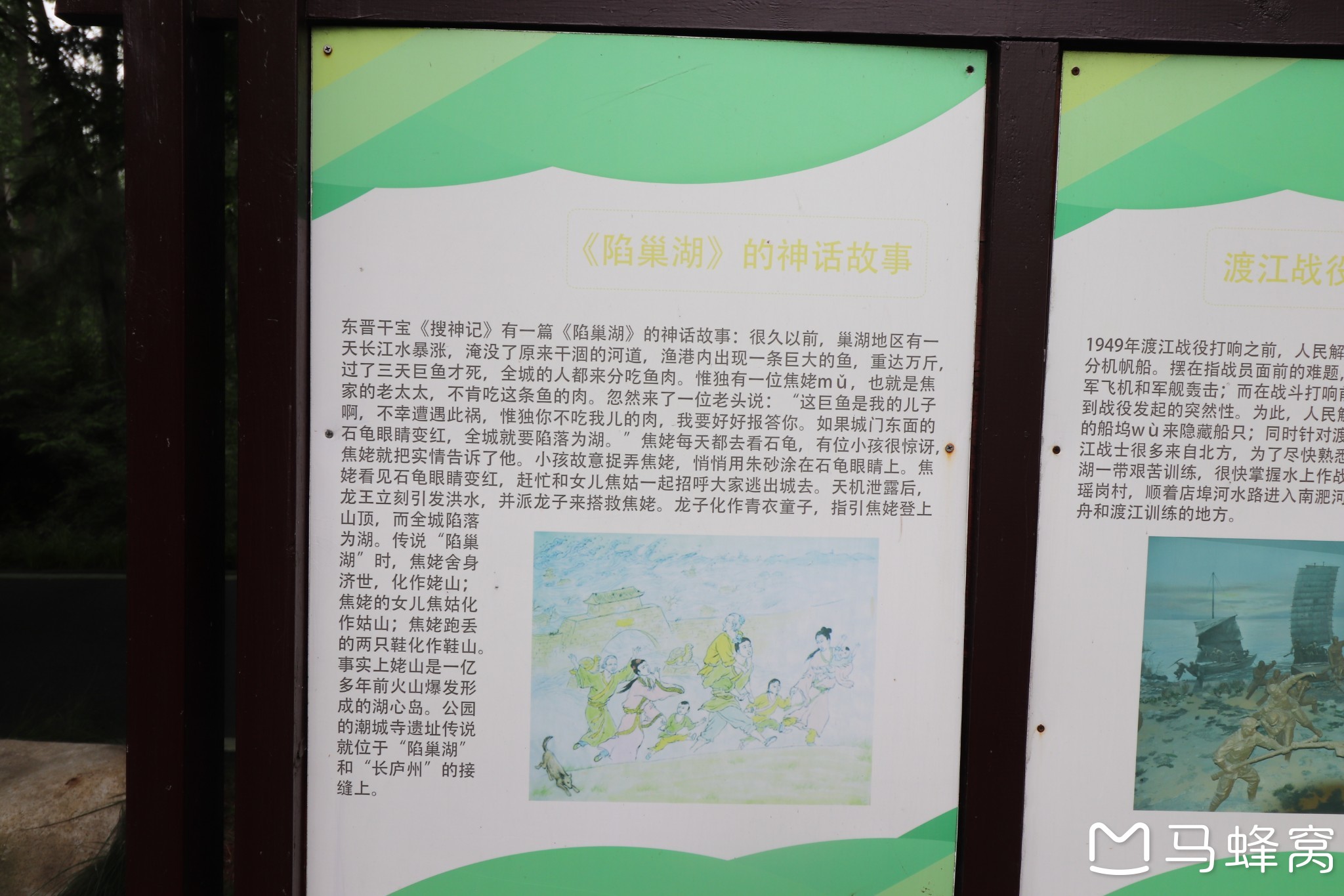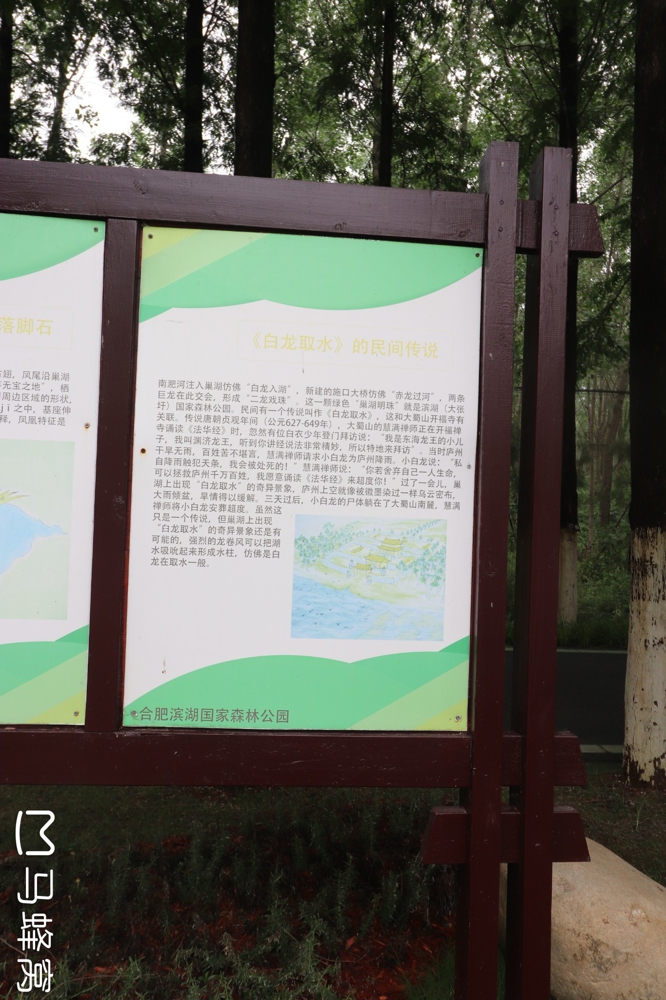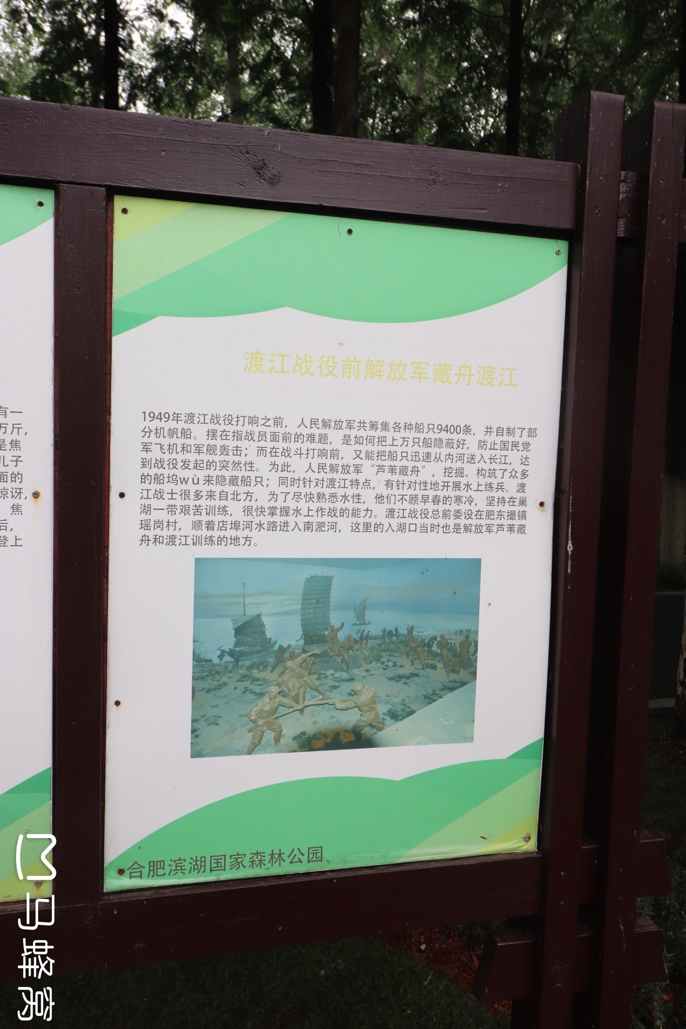 旁边有展板介绍与巢湖有关的历史故事和公园长江植物和鸟类