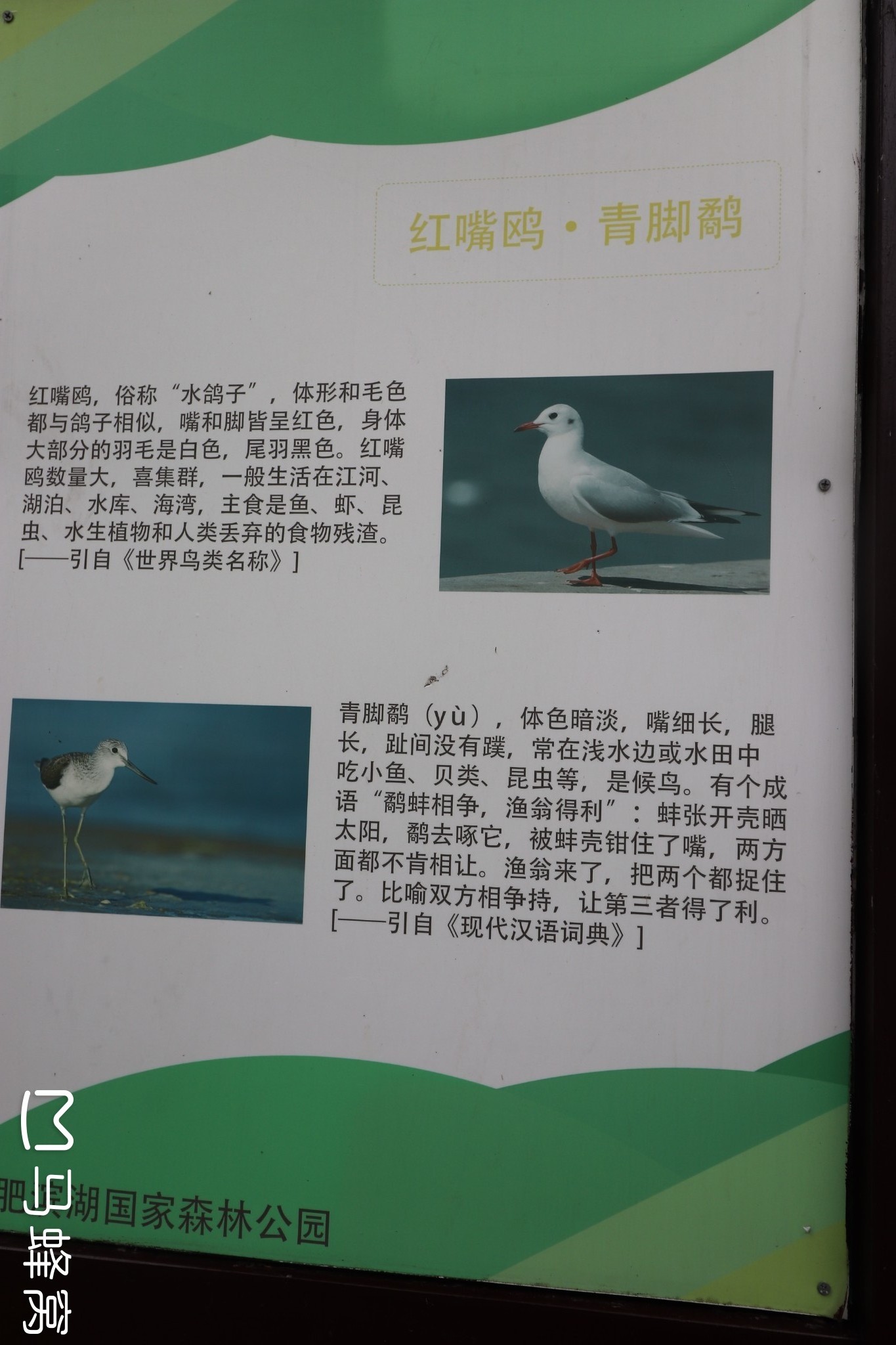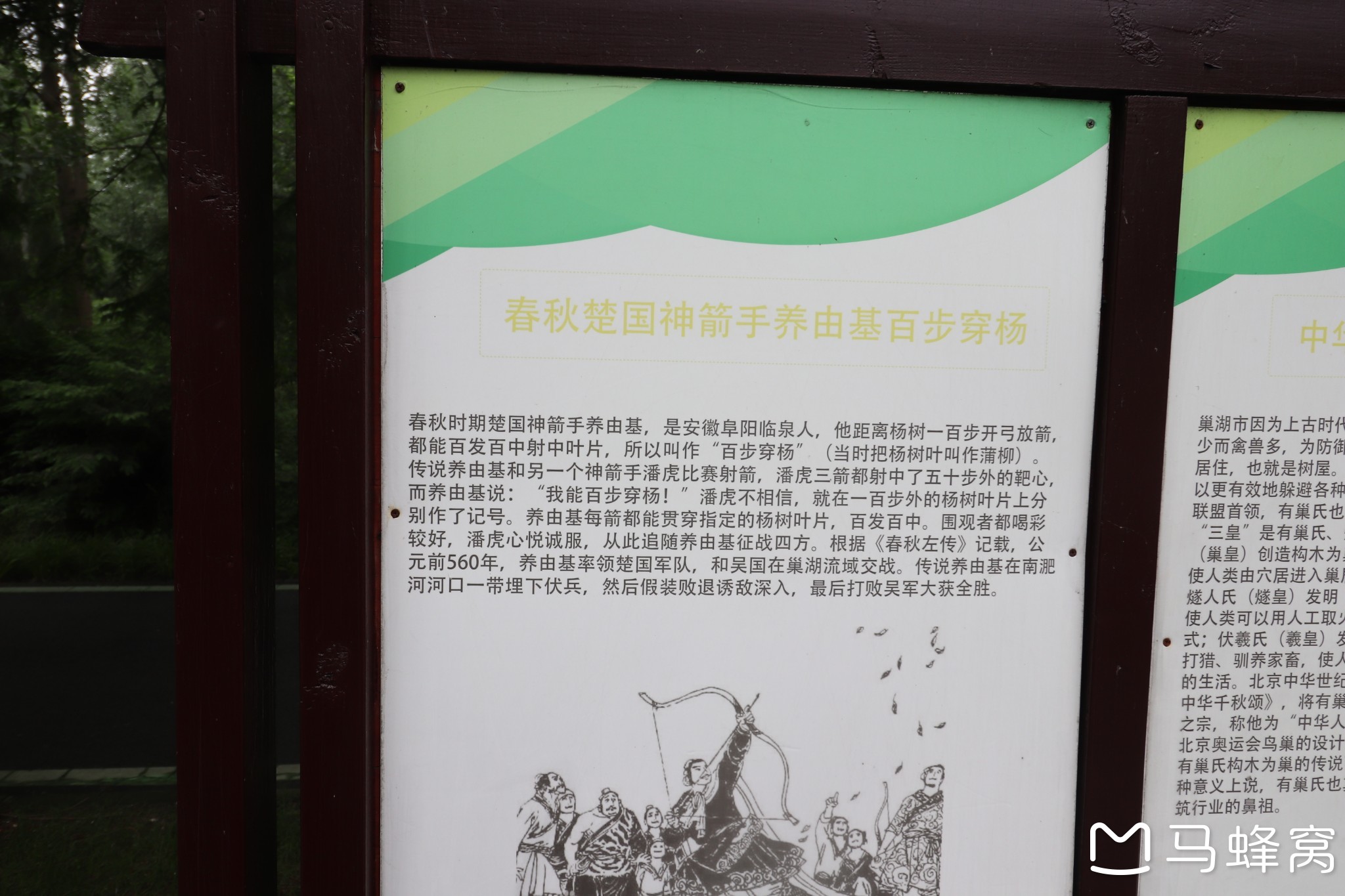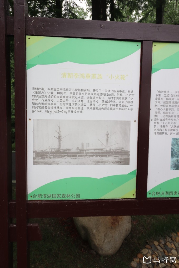 旁边有展板介绍与巢湖有关的历史故事和公园长江植物和鸟类
