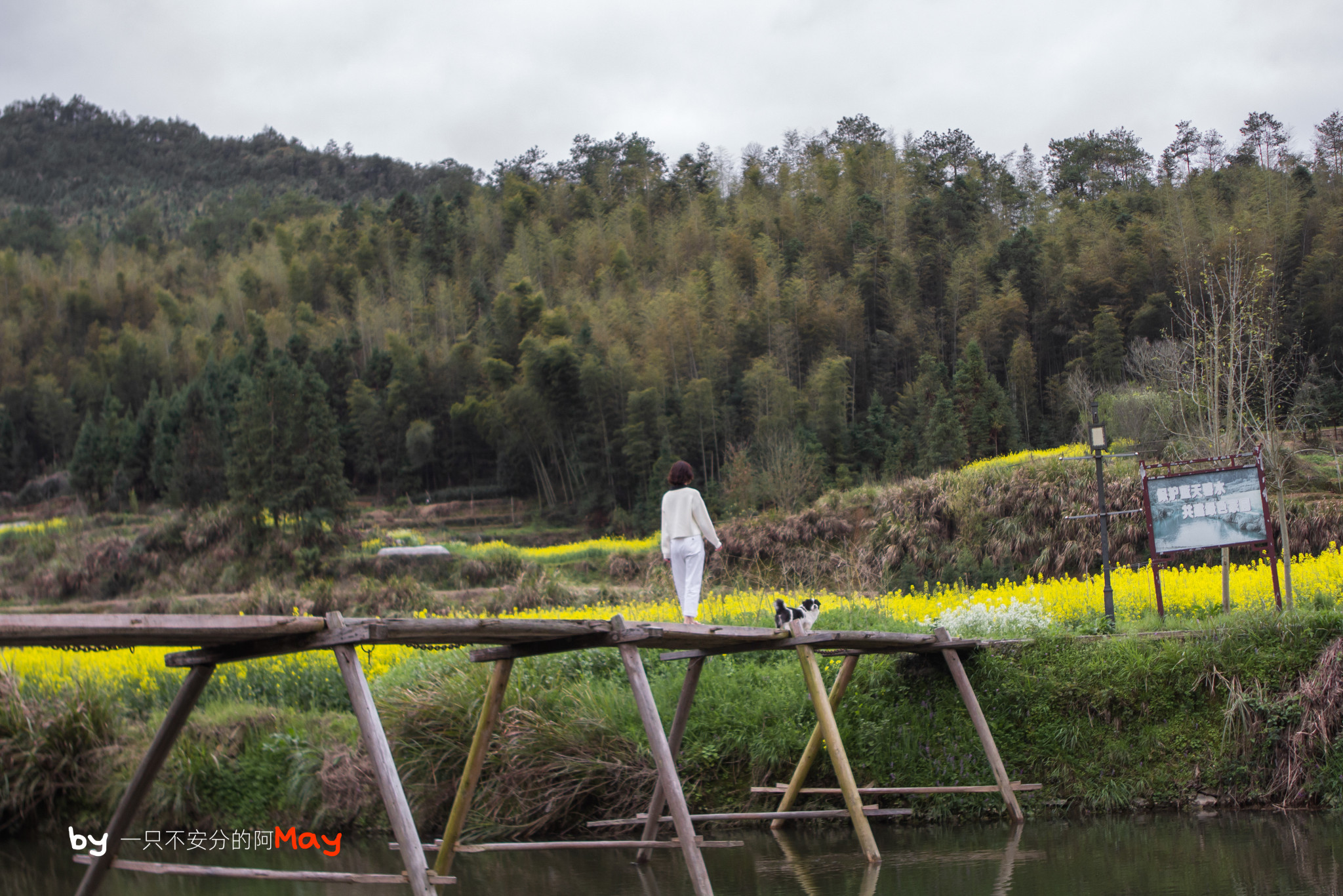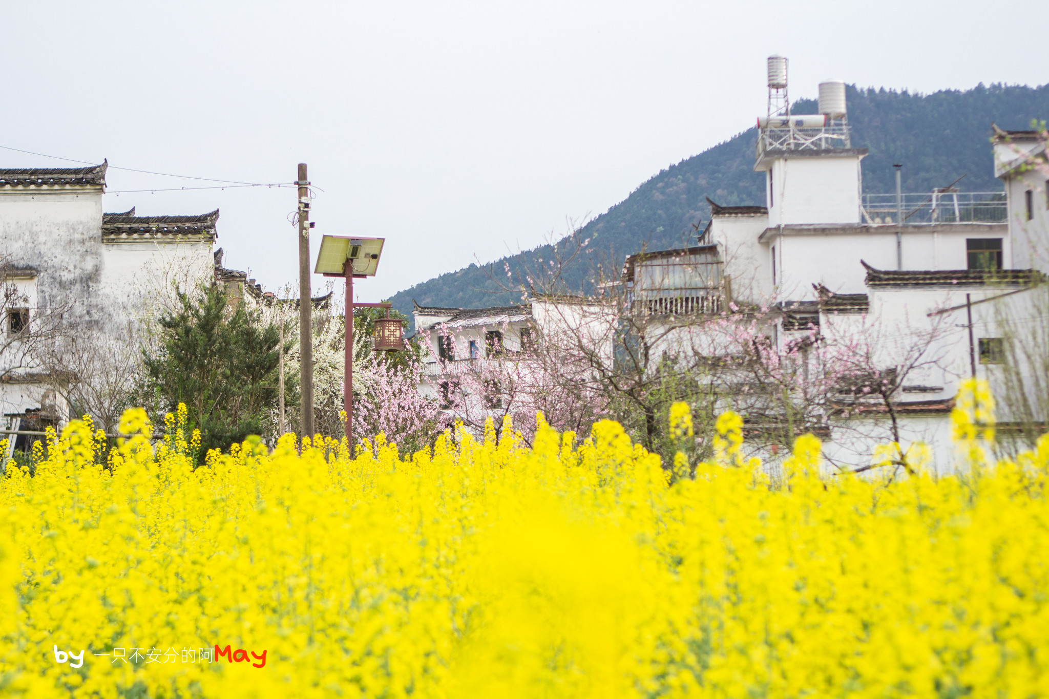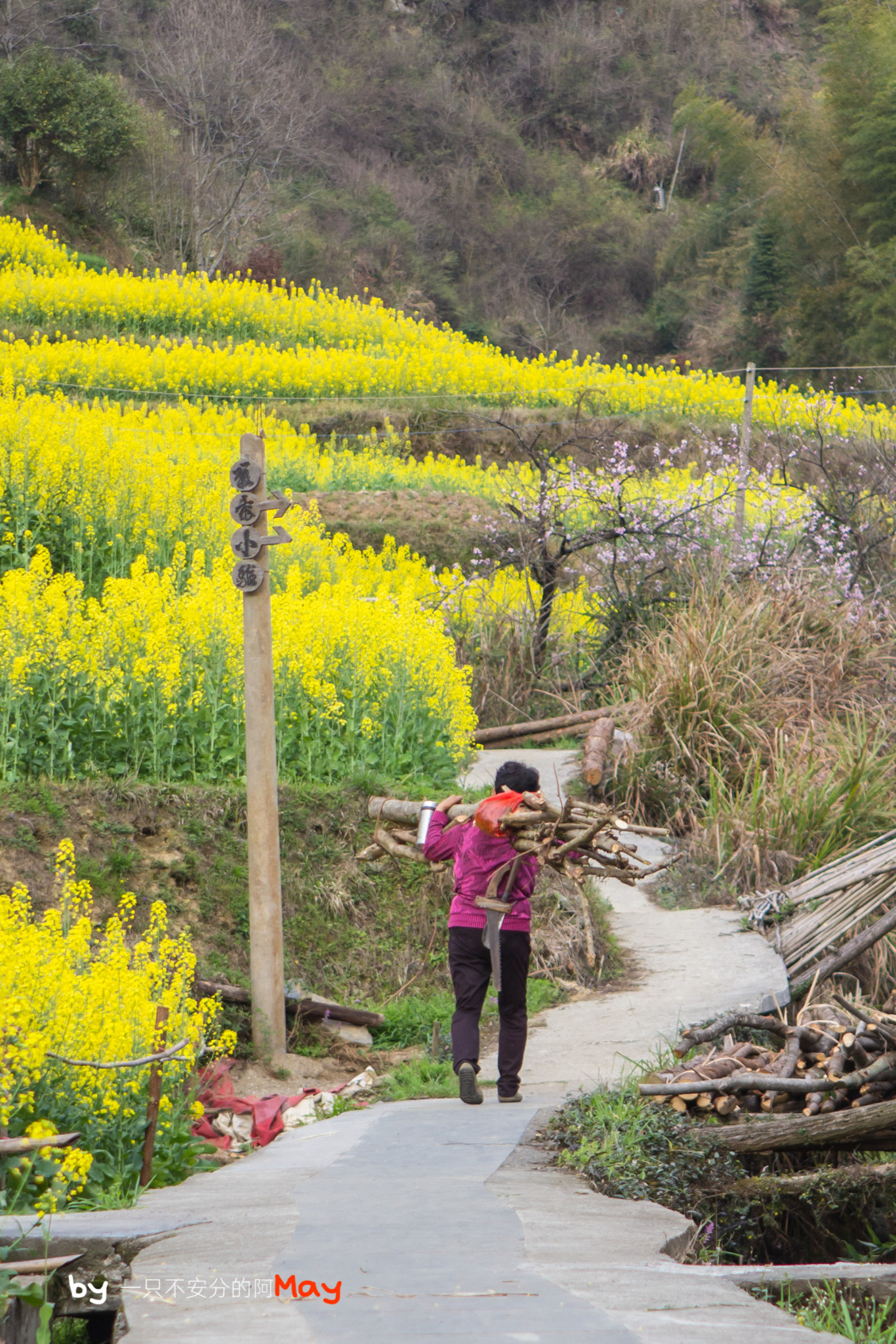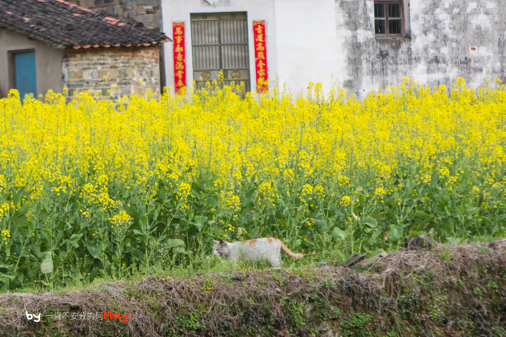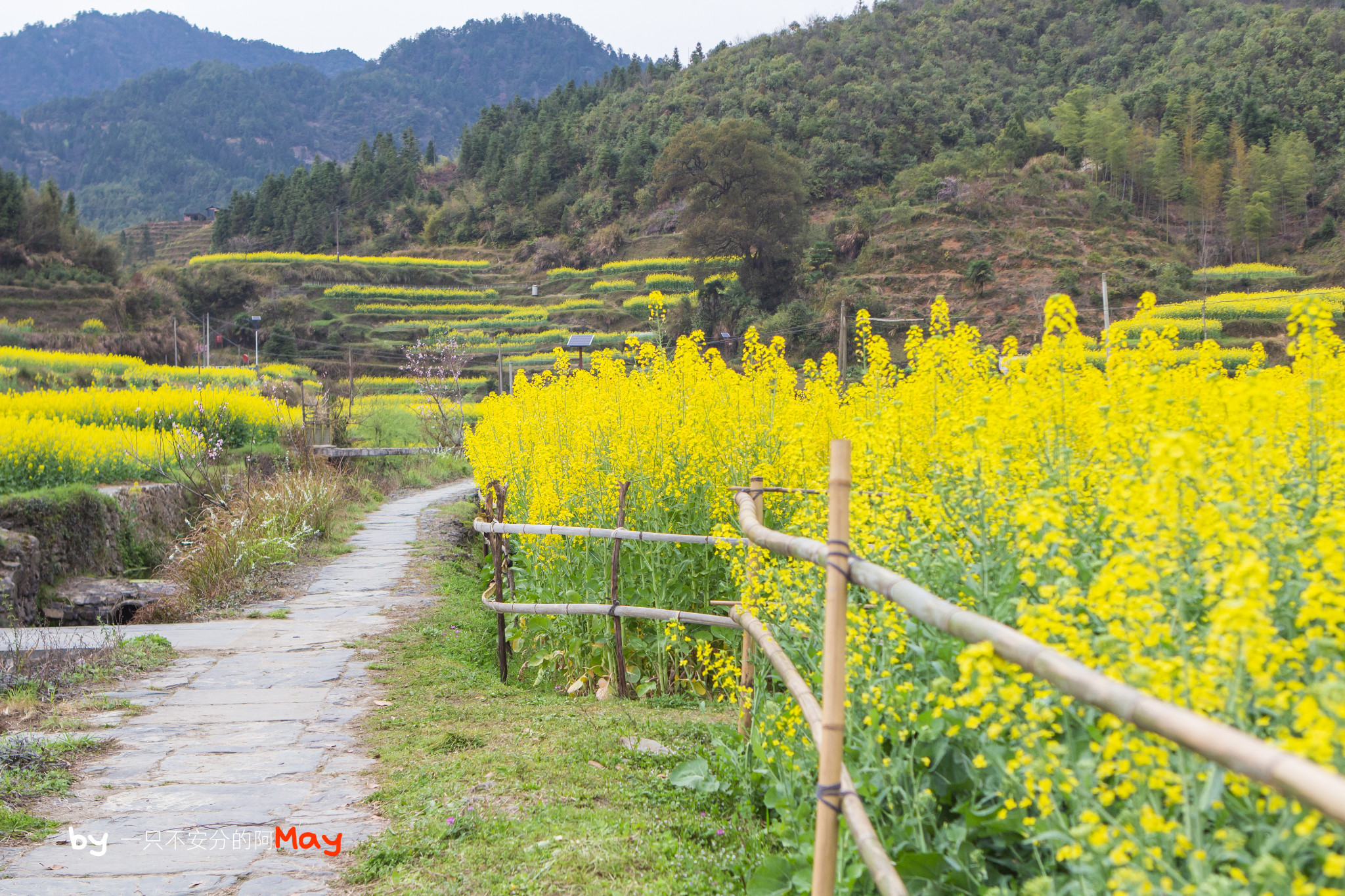 村口是赏油菜花的好地方。婺源的油菜花枝高、花瓣大且密集。竹篱围起的区域就好像专门为赏花而种的一样,还辟出了一条供拍照的小径。花丛中飞舞的满是蝴蝶和蜜蜂,花香四溢,春意盎然。