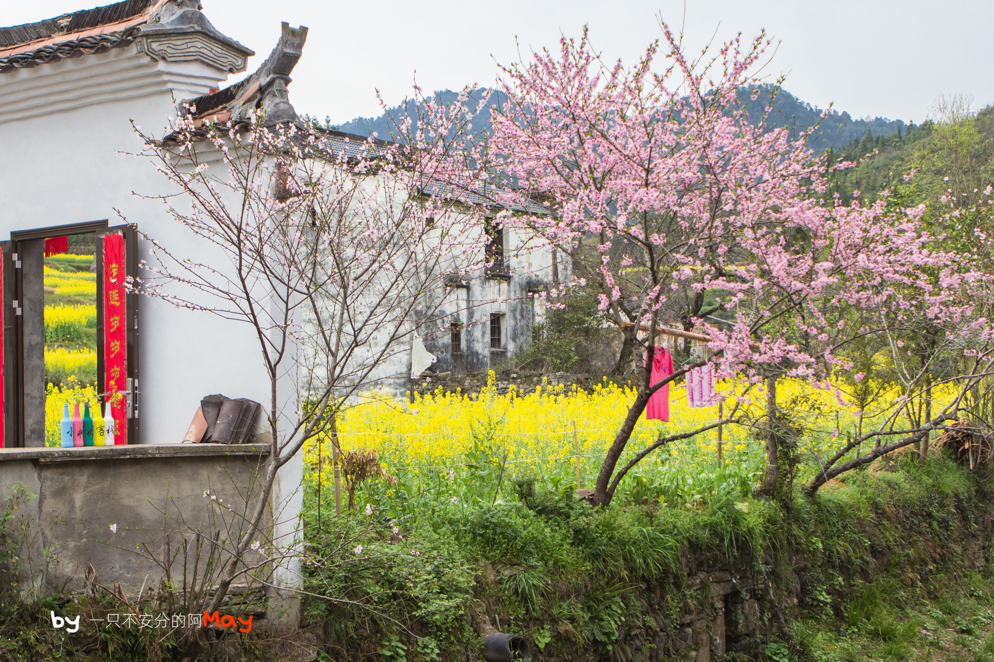 庆源古村是一个1300多年的老村子了,建于唐开元年间。正如我所走过的路,村子位置极其隐蔽,更别提很多年以前了。看介绍村头的隘口处山闭涧断,因此躲避了很多战乱。村口被大片油菜花田覆盖,溪边种植有三两棵桃树,与来时的经历呼应,这一处是“世外桃源”没错了。
