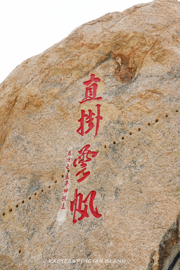 而岛上刻有“68海里中国·平潭”朱红色大字的标志性石碑,