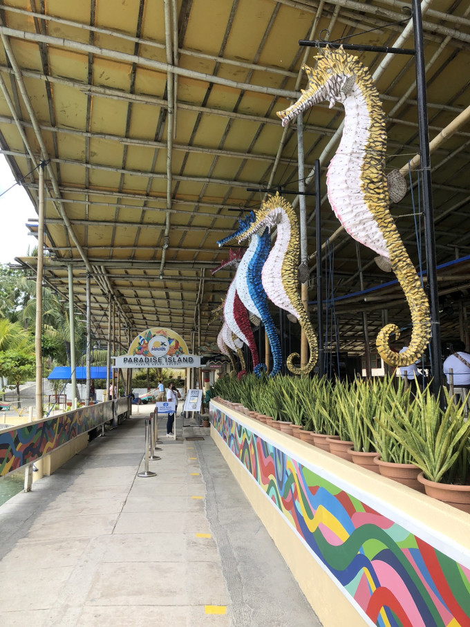 陆地游包车基本都是3500p一天,八九点到下午4天,超钟要加钱。本来想定一部车,但小朋友的时间太容易变动,我就没预定,然后就后悔了。从天堂岛去其他地方游玩的话,得先付清所有的账单拿到gate pass才能放行,同时酒店前台会给re-entry card 方便回来。我们走出酒店后在路边等了很久才等到三轮车。小孩孕妇坐这玩意,真折腾。