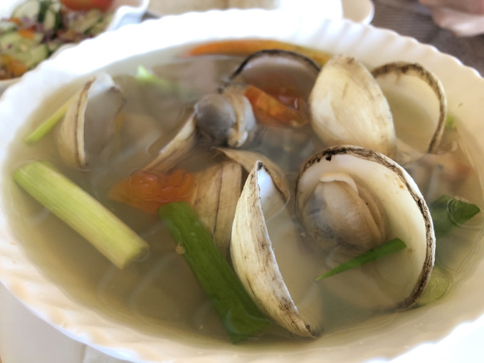 然后从餐厅继续坐这个三轮车去码头,等船去看车磲。
