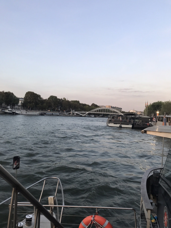 网上提前预约的塞纳河游船,从埃菲尔铁塔下出发,到巴黎圣母院返程,全程2个小时,正好从傍晚坐到晚上亮灯,速度非常快,一路风景特别好,价格记不得了但是不贵,非常推荐