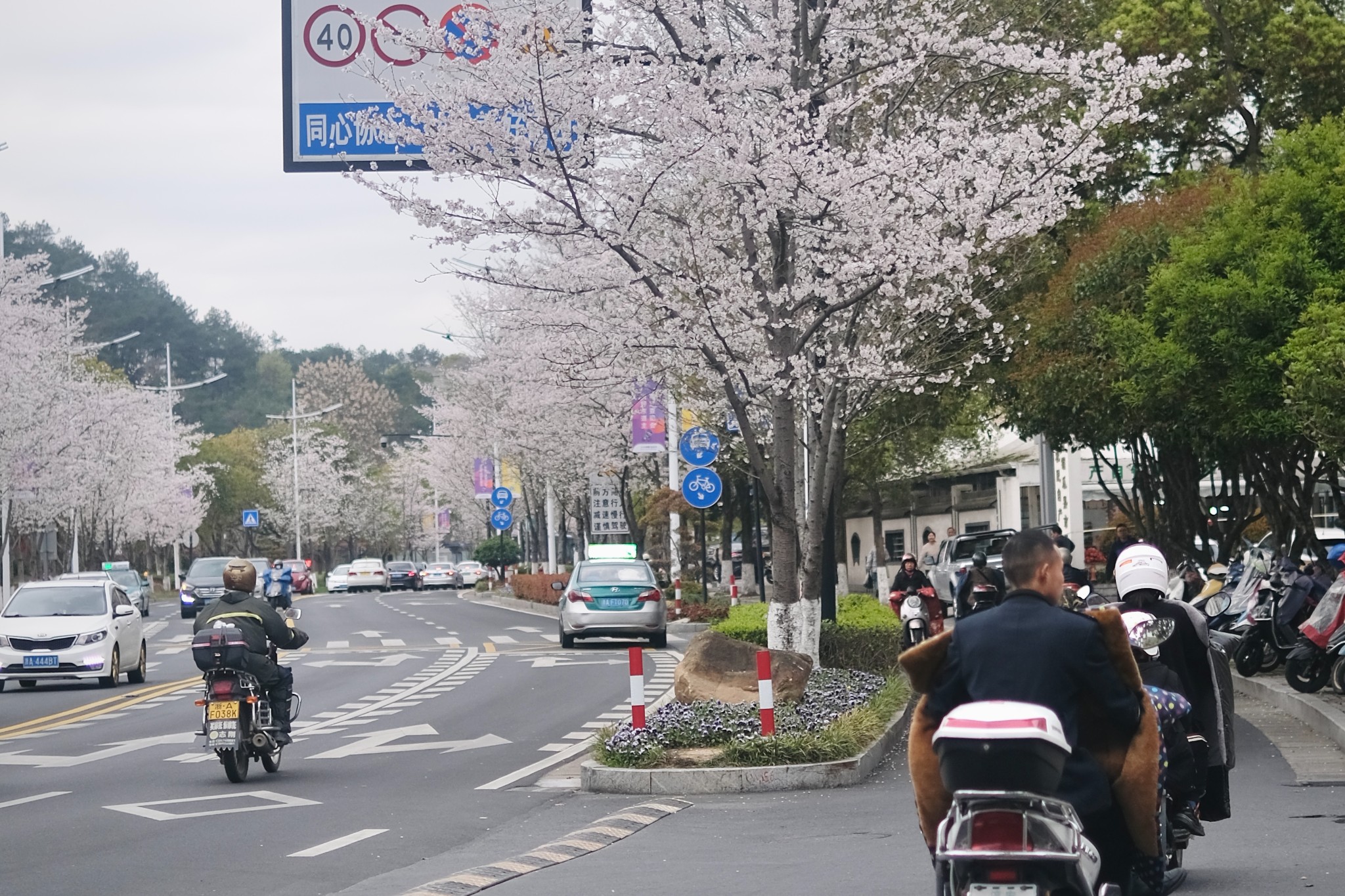 后来才知道我们误打误撞遇到的【阳光路】,是一条网红樱花大道。