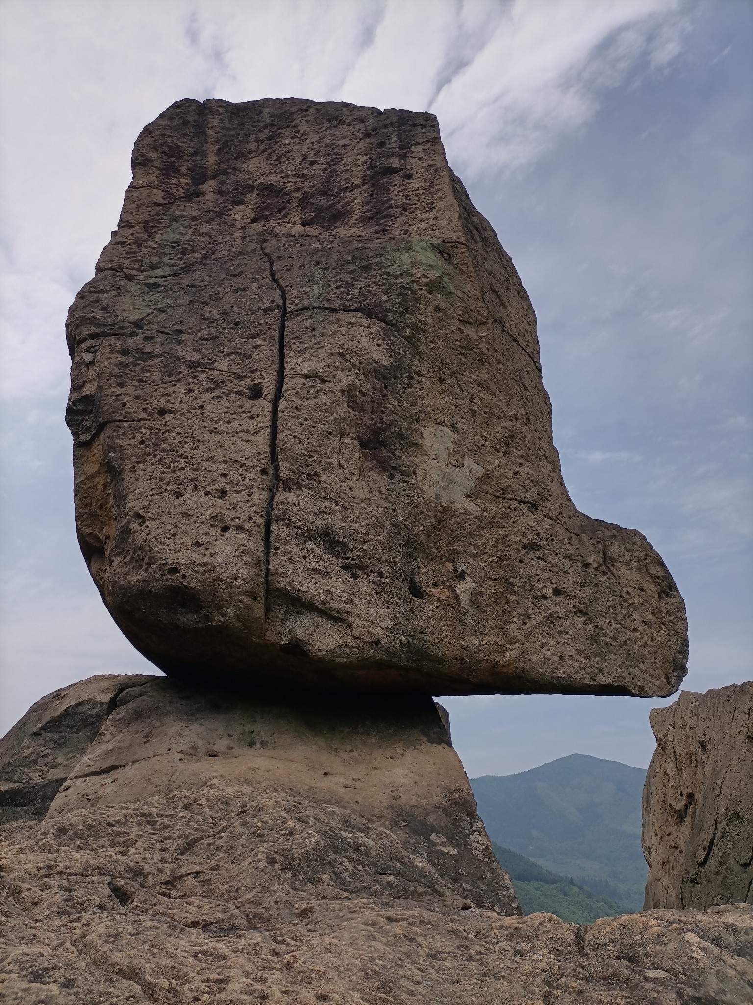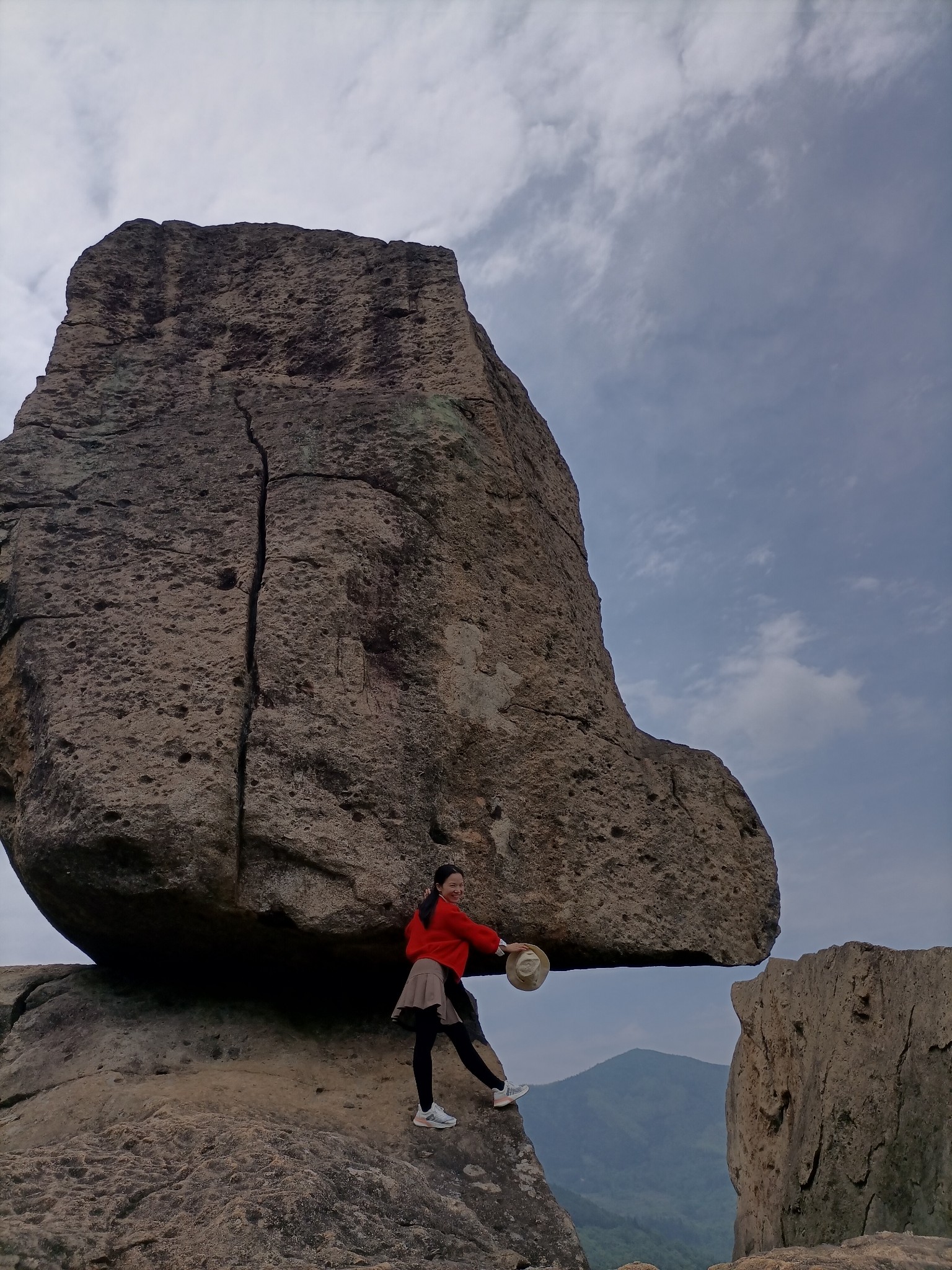 大自然的鬼斧神工,一块巨石搁在上面,也像一顶古时的官帽。