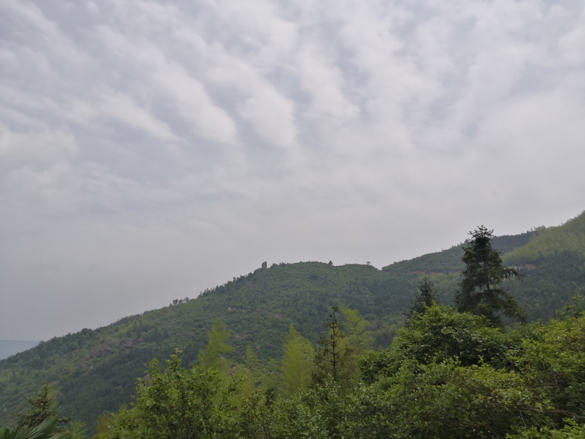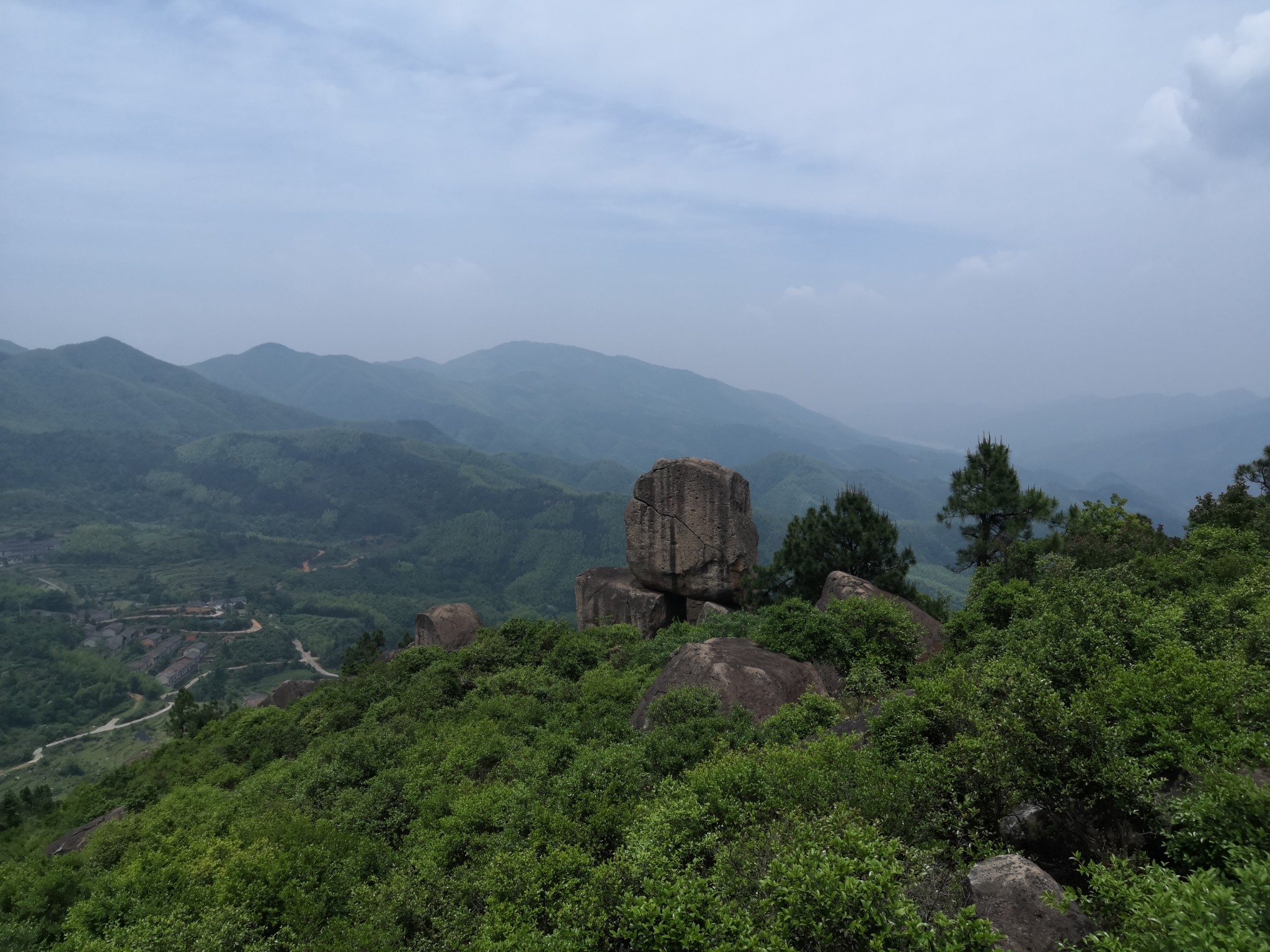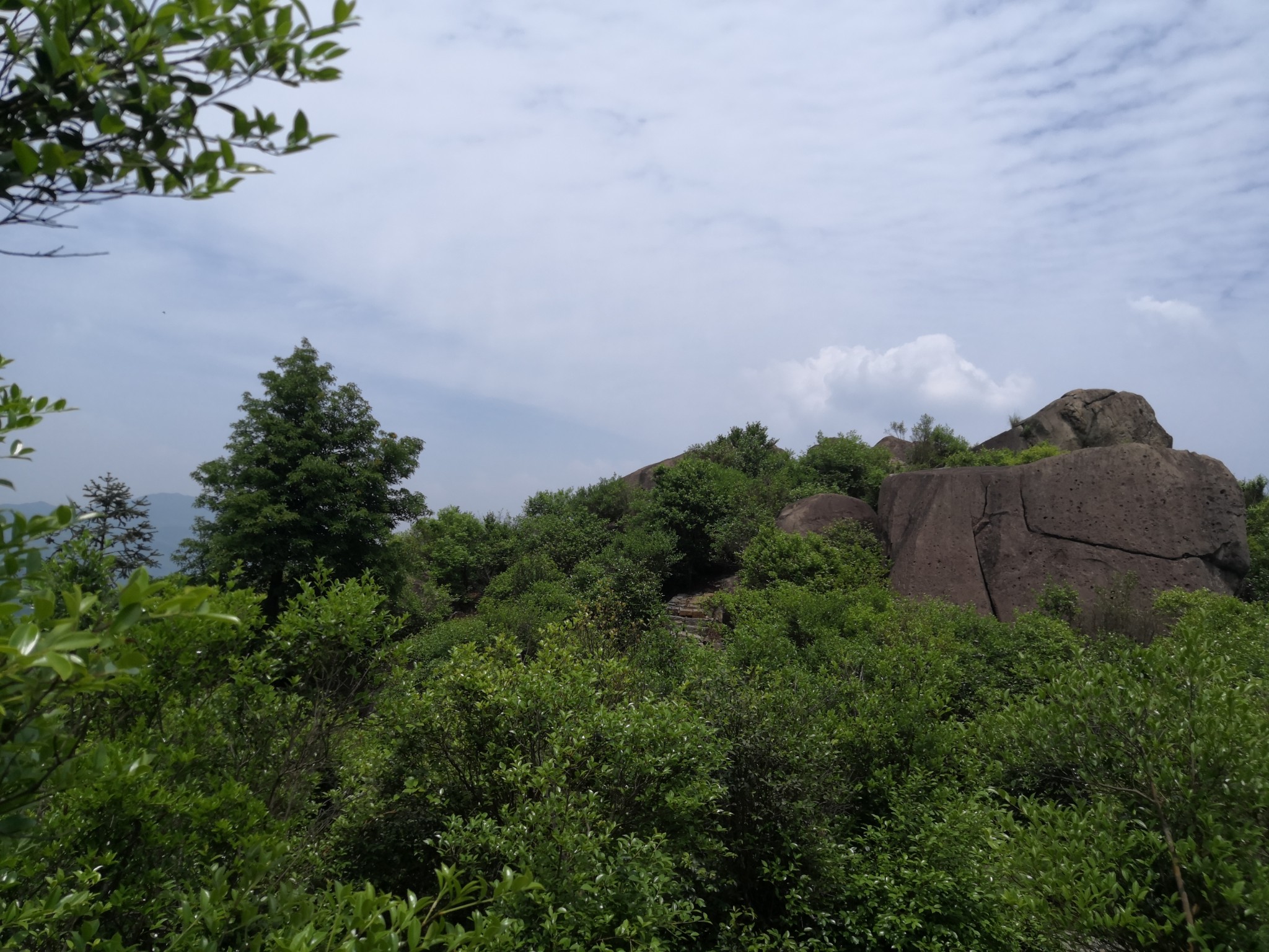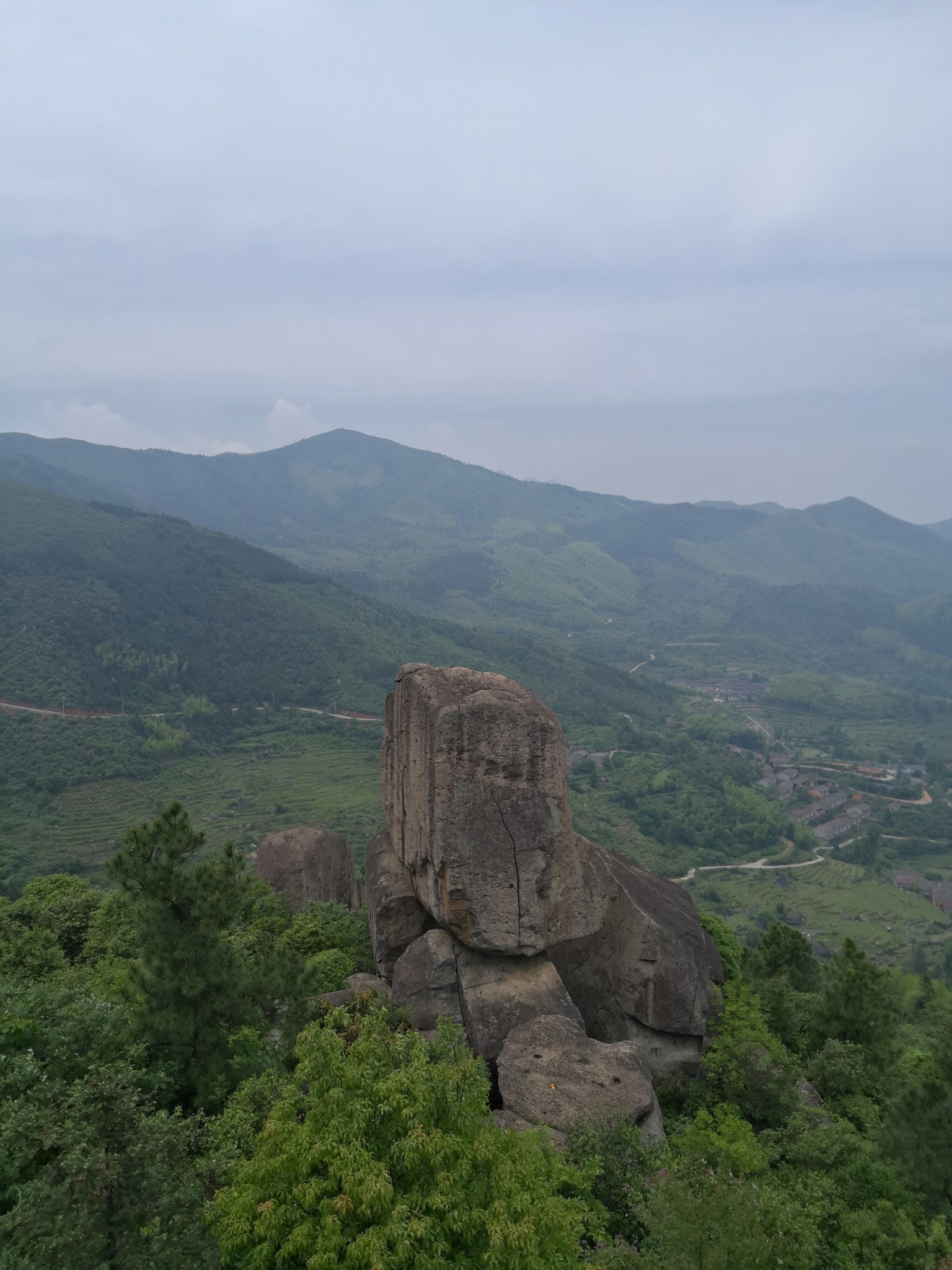 吃过午饭, 从石江乡卫生院向右转,往鸡龙山盘桓,山路弯弯,九曲回肠。约莫二十分钟就能望见五丈石了。