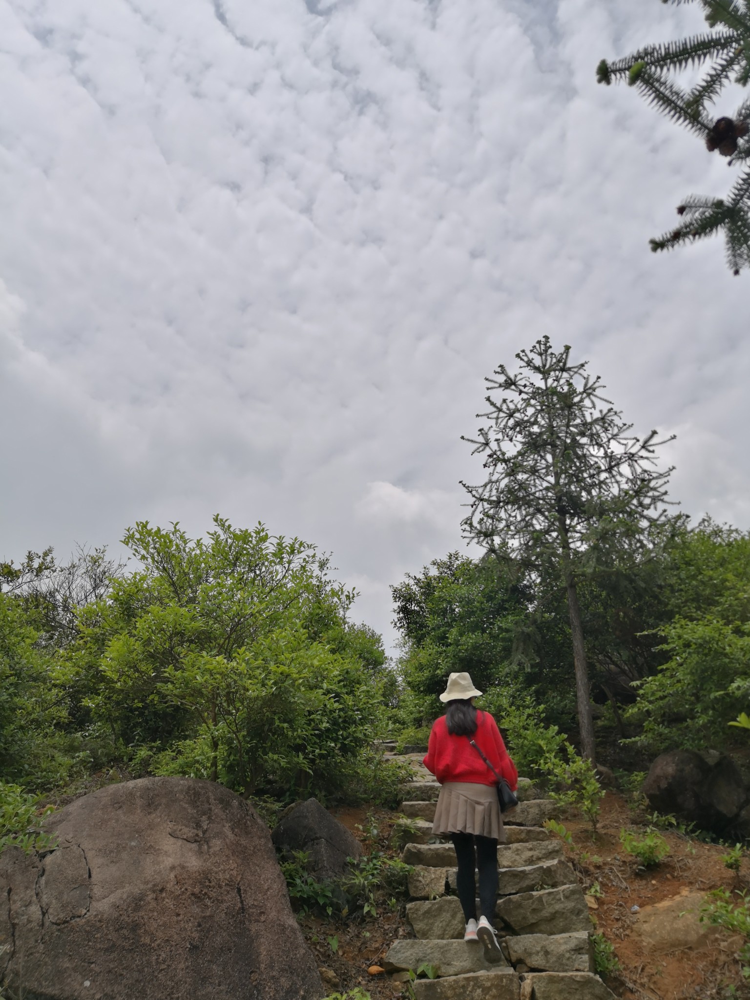 停好车,沿着石阶前行。