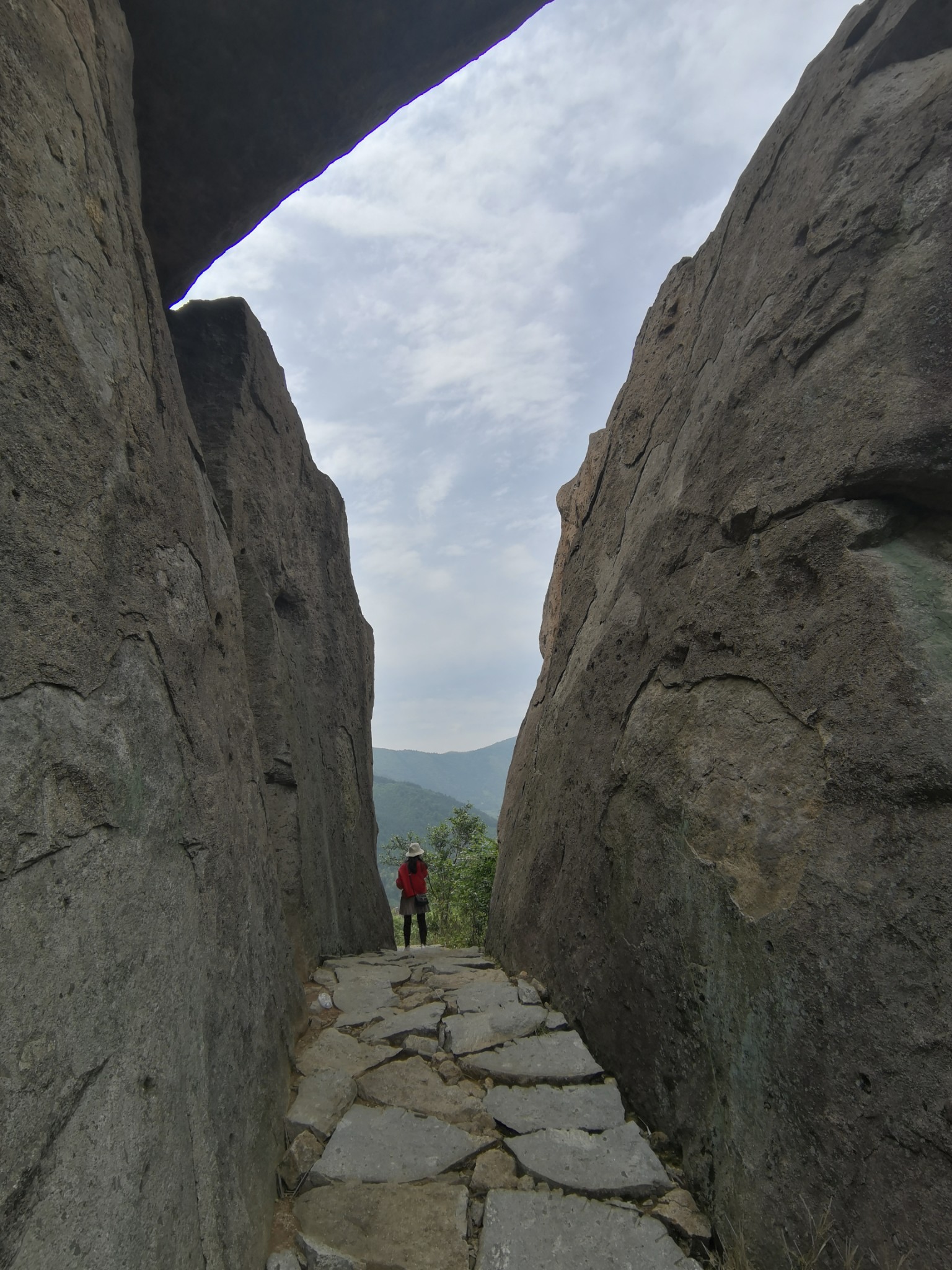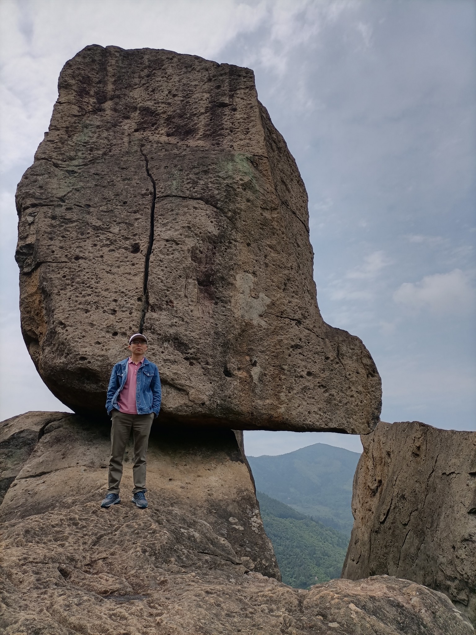 继续前行,来到刚才儿子站立的巨石上,近距离俯视五丈石。