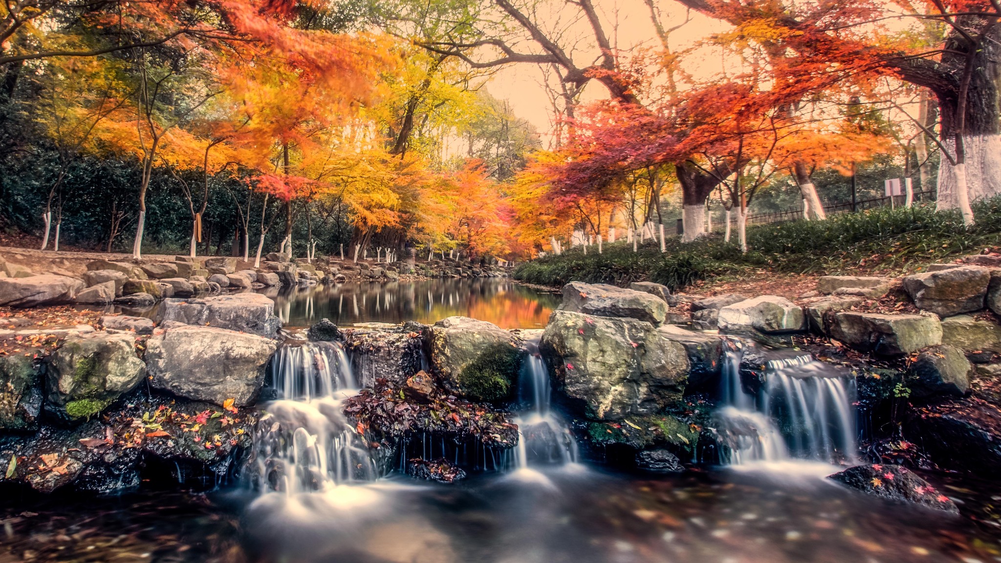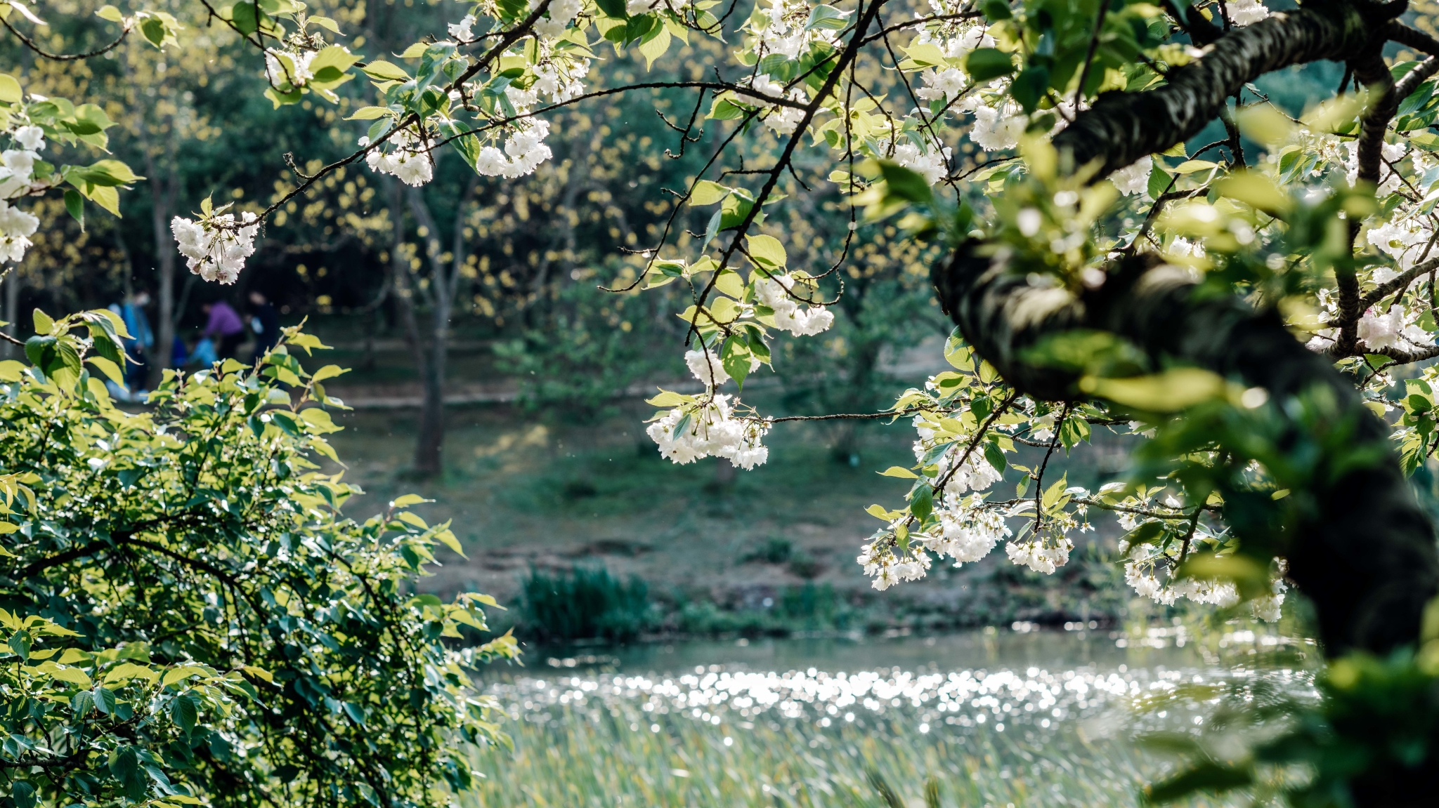 每年几乎所有花都凋谢完之后,只有乌龟潭的晚樱在灼灼绽放,随风摇曳的樱花,波光粼粼的水面,三三两两的行人走过樱花树下,小径深幽,“和春住”应是此般意境了