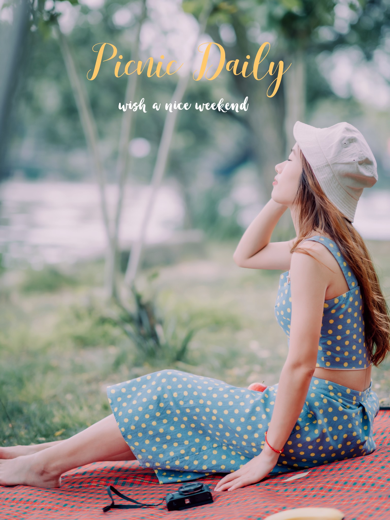 坐在野餐垫上吃东西看风景等动作都非常好拍,也可以躺着趴着哦