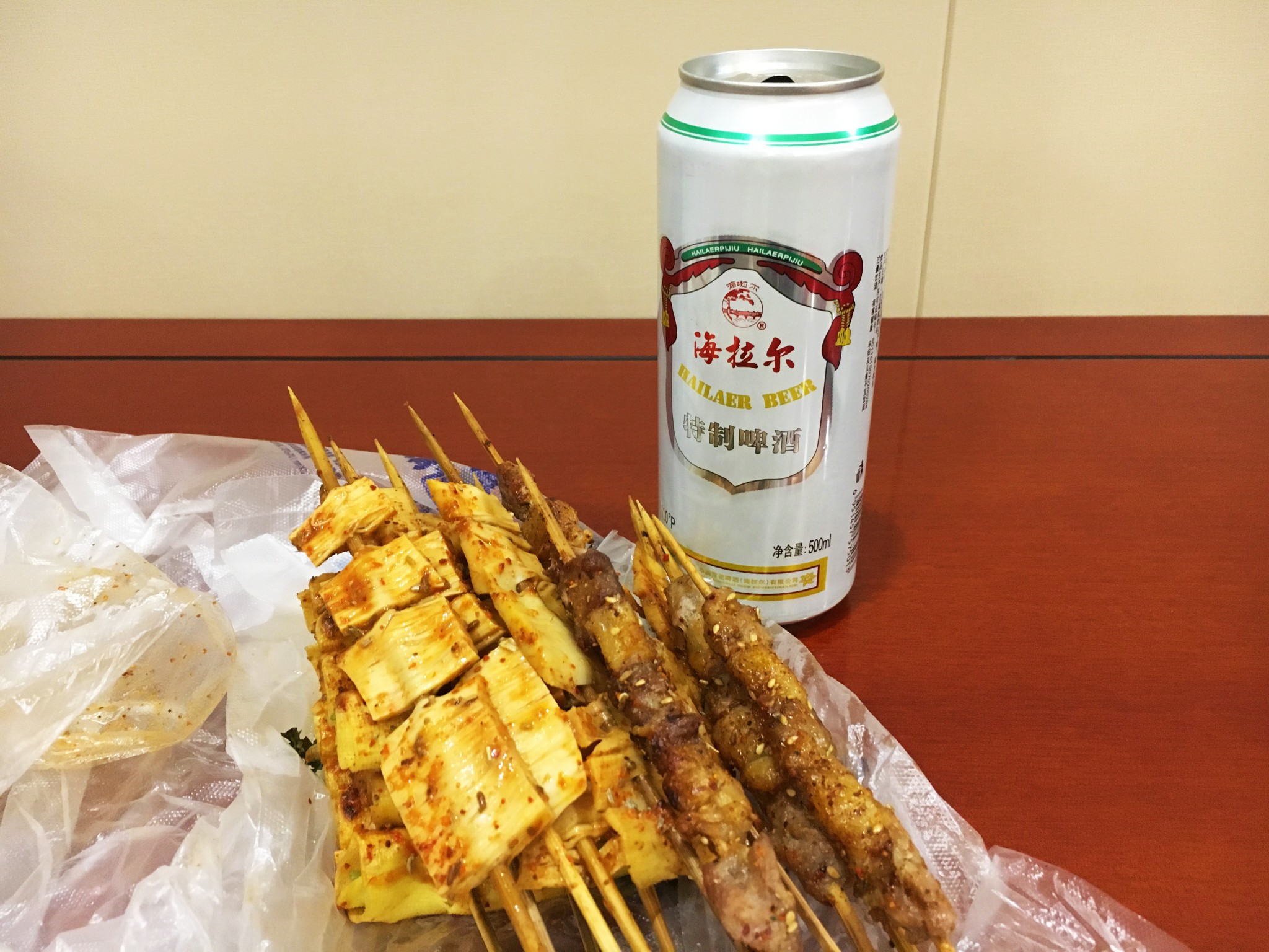 实在没忍住,到楼下买了烤串和啤酒,吃喝完睡觉