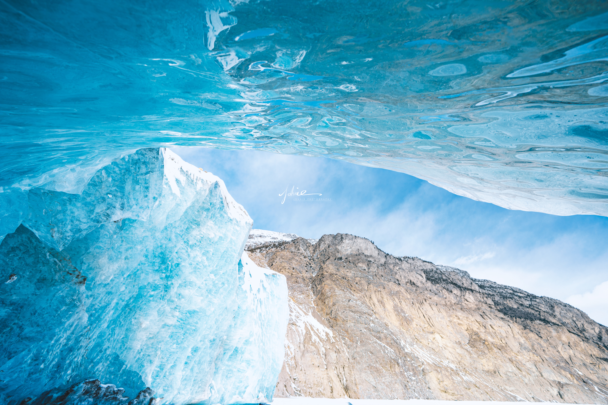 在人迹罕至的祥格拉冰川与蓝冰亲密接触。