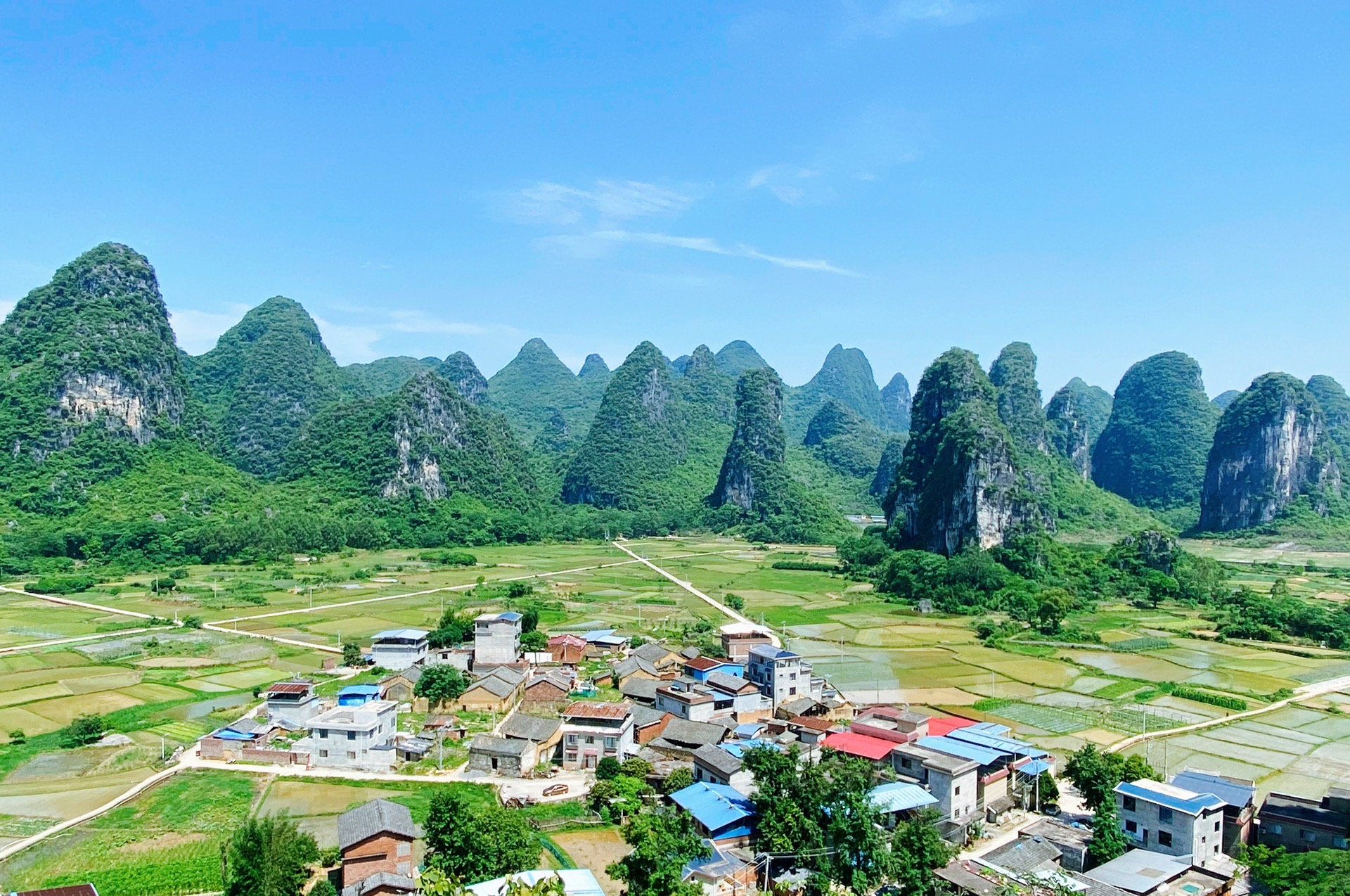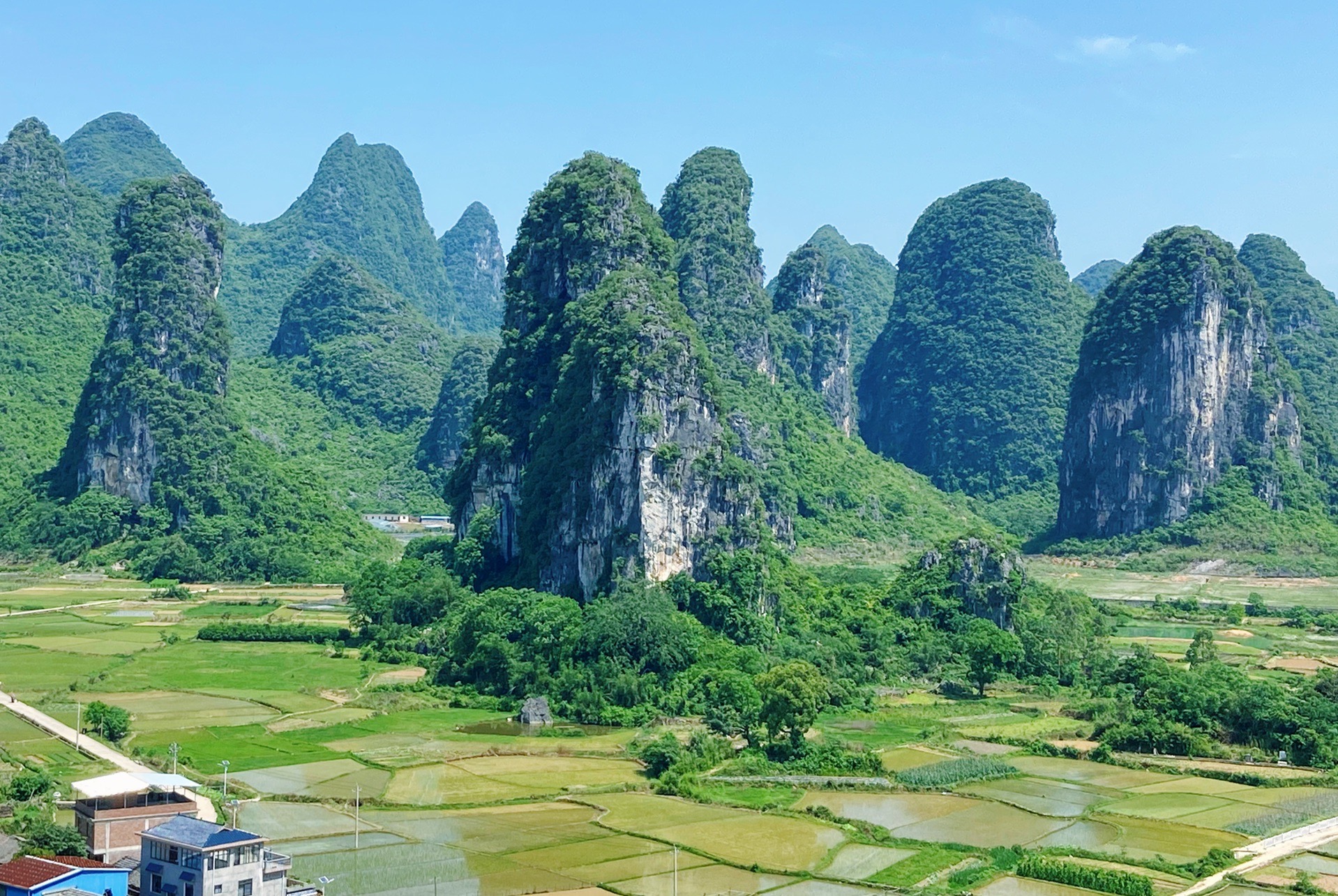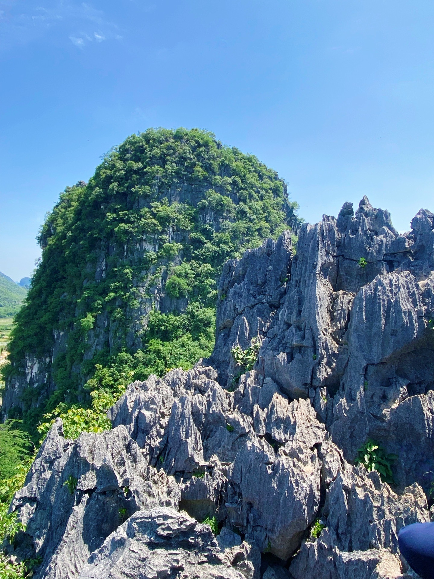 感觉隔壁的山头更高,视线更好。可找不到那边的登山路。这典型的喀斯特地貌山型,连绵起伏,形成一幅美丽的山水画。