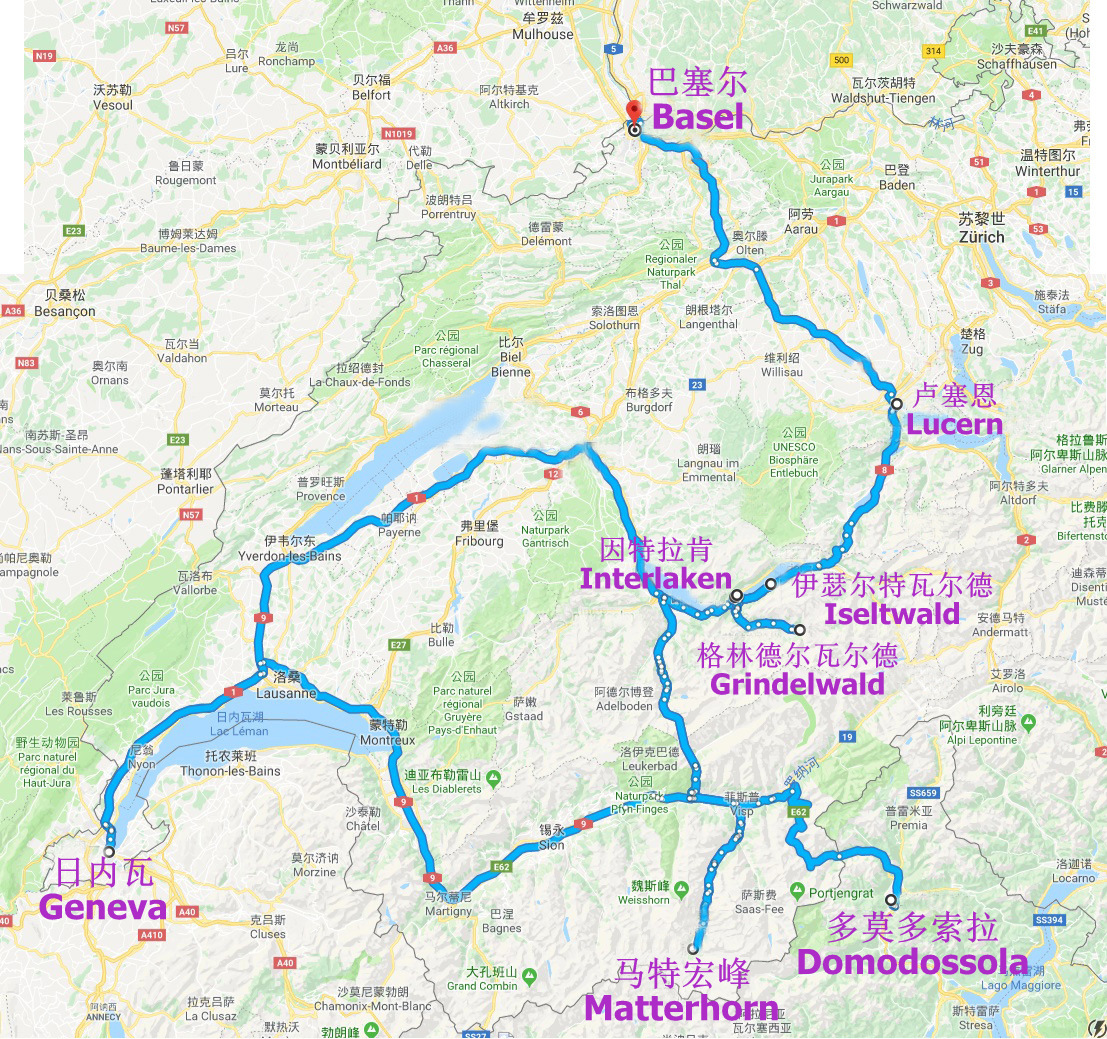 随即,我将剩下来的行程全部进行重新调整,包括旅馆的重新预订!由于我们离开瑞士的最后一天晚上要抵达海德堡,时间上不能推迟,所有不得不舍弃掉一些景点,比如施泰因和Rigi山,最后的方案为: