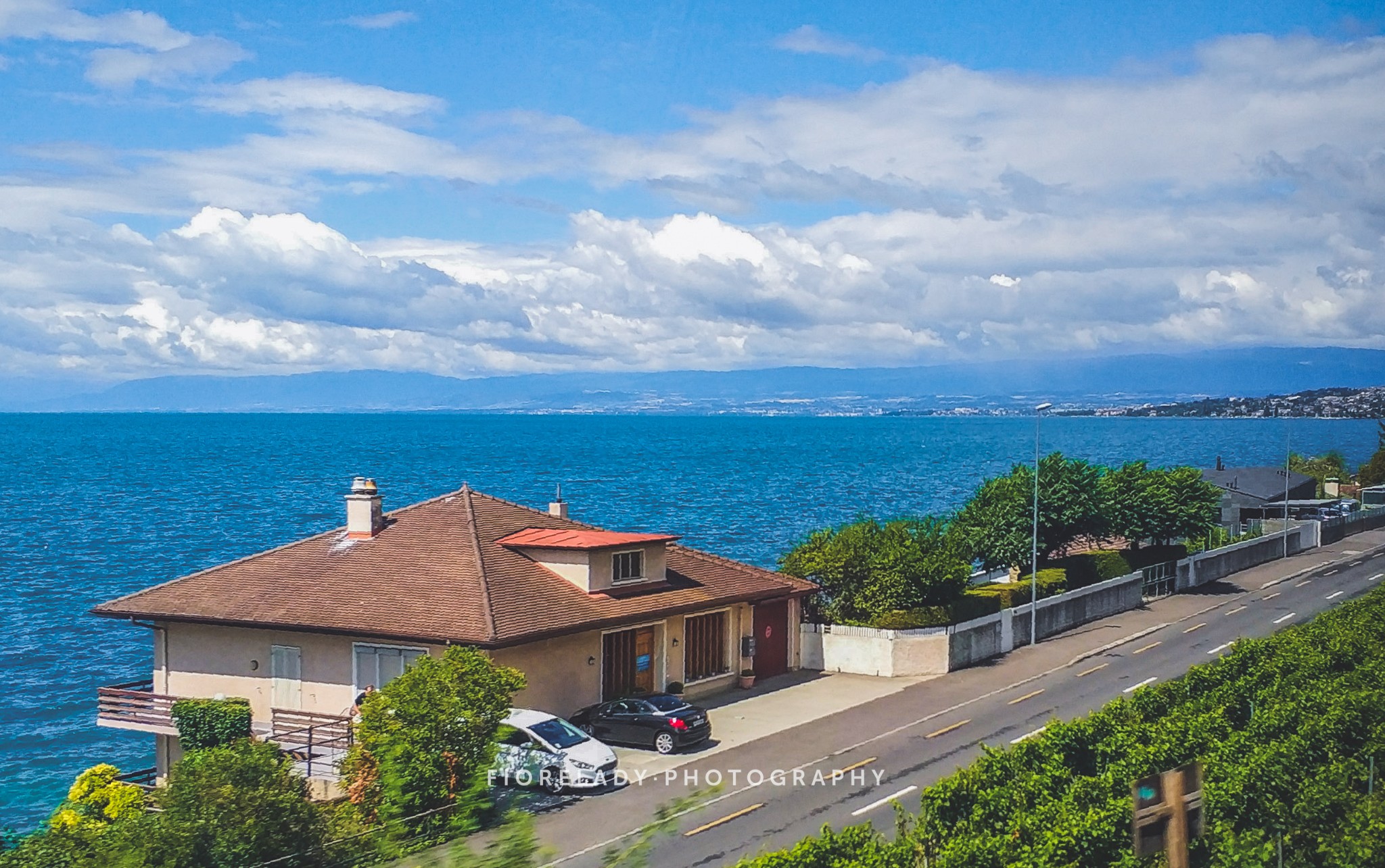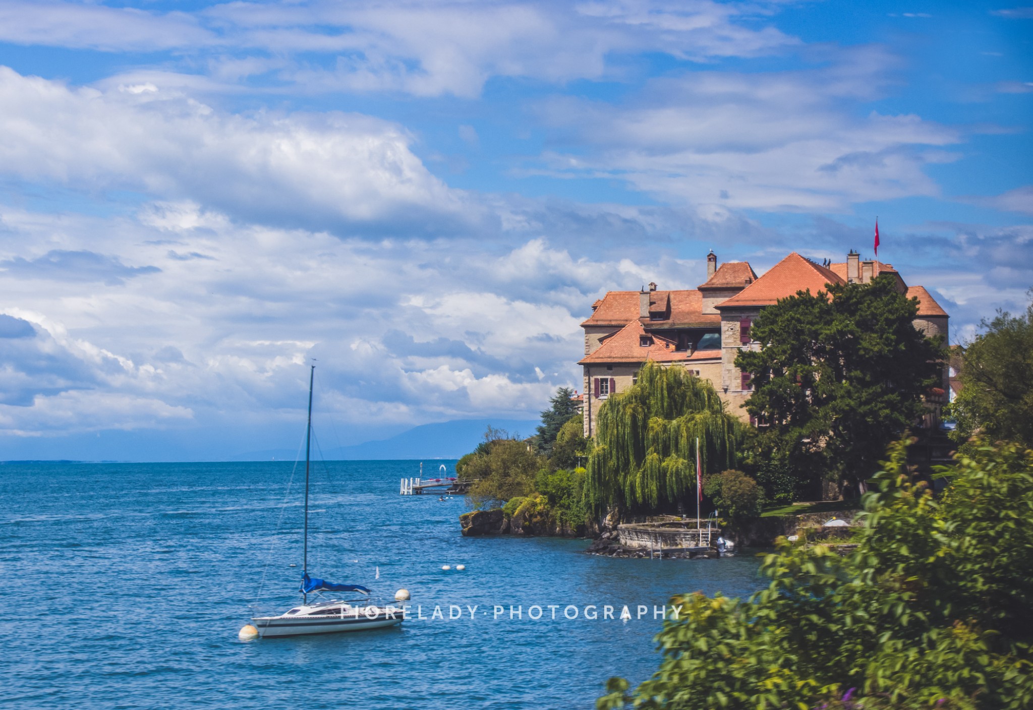 西庸城堡正面的这一片湖区便是瑞士最大的湖,也是阿尔卑斯湖群中最大的一个,位处瑞士和法国两个国家,瑞称日内瓦湖,法称莱芒湖,我更喜欢莱芒的叫法!