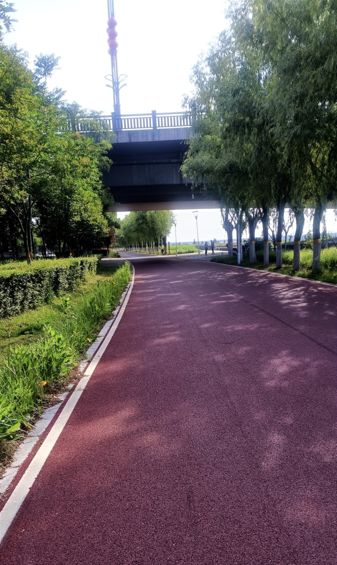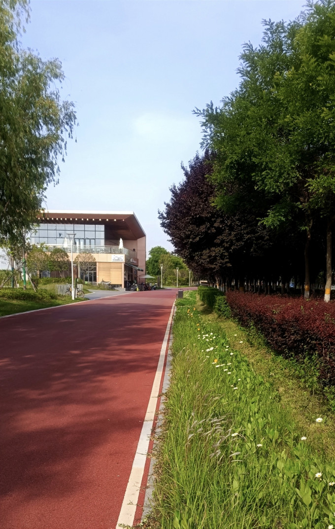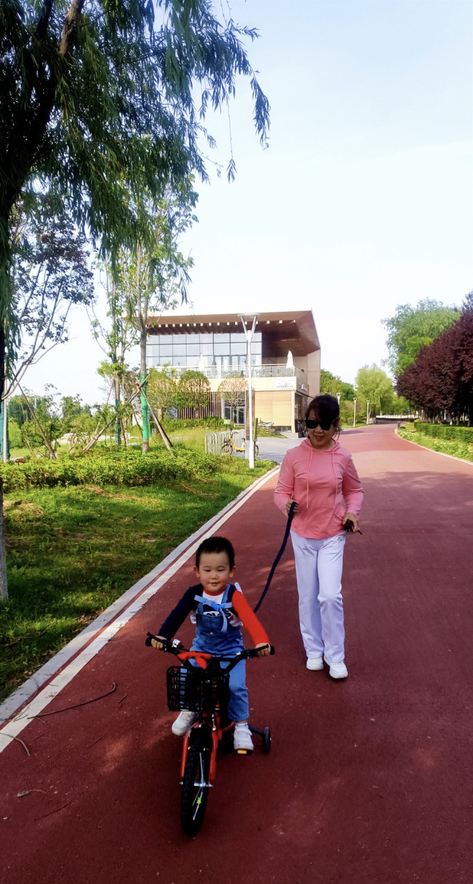 河堤路上适宜骑行的绿道(自行车道)很长,随便那一段都可以,带小外孙去那里骑骑,让小家伙过过瘾。