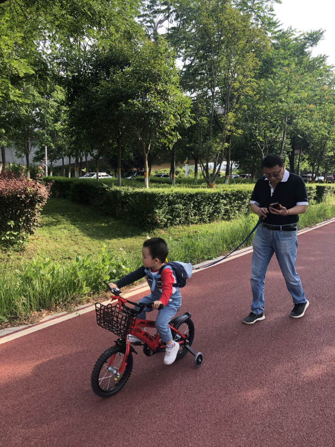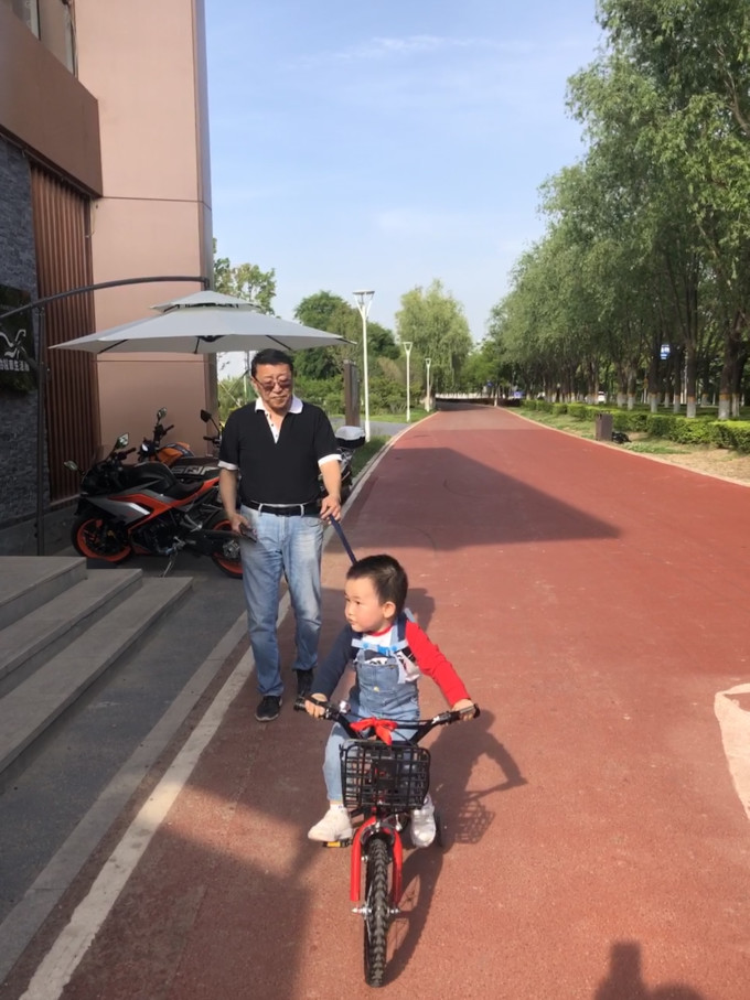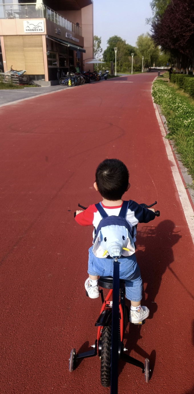 前些天女婿给孩子买了辆自行车,小家伙非常喜欢,才两岁四个月居然不用教就骑的挺好,在家门口遛了遛,有些不过瘾,于是想找个宽超些的地方让小家伙放开了骑骑。