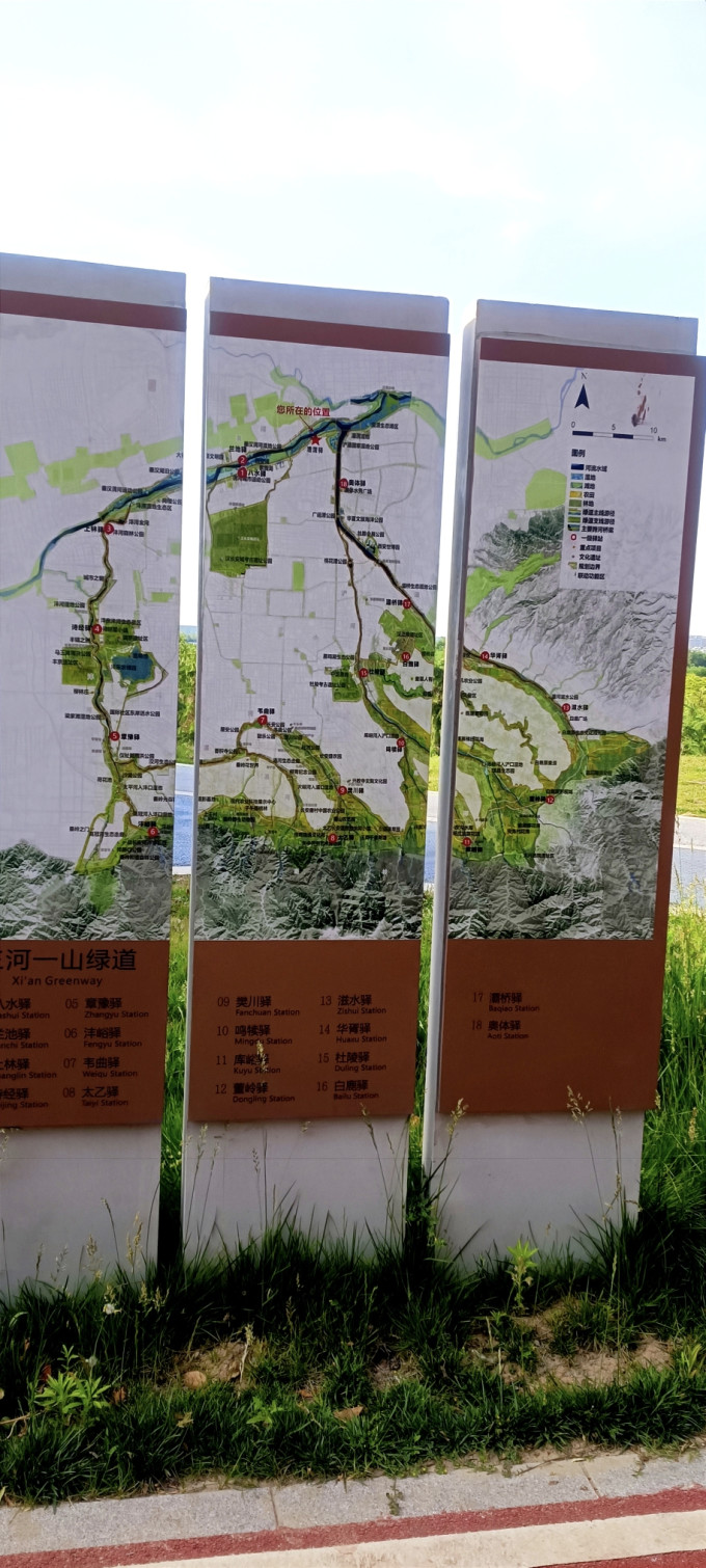 西安的三河一山绿道在这一段修葺的很漂亮,树荫也好,正好遮蔽骑行的绿道。
