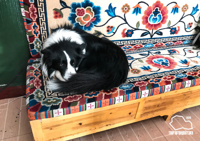 在楼下吃了八宝粥和糖包,回到旅舍门口看见昨天和我一起租车的两个女生也穿着雨衣出发了。前厅只剩下三四辆车。老板是个憨厚的藏族人,他说青海湖的天气阴晴不定,雨来得也快去的也快,建议我等到12点,如果不下了,就出发,到江西沟也就7个小时,天还没黑。