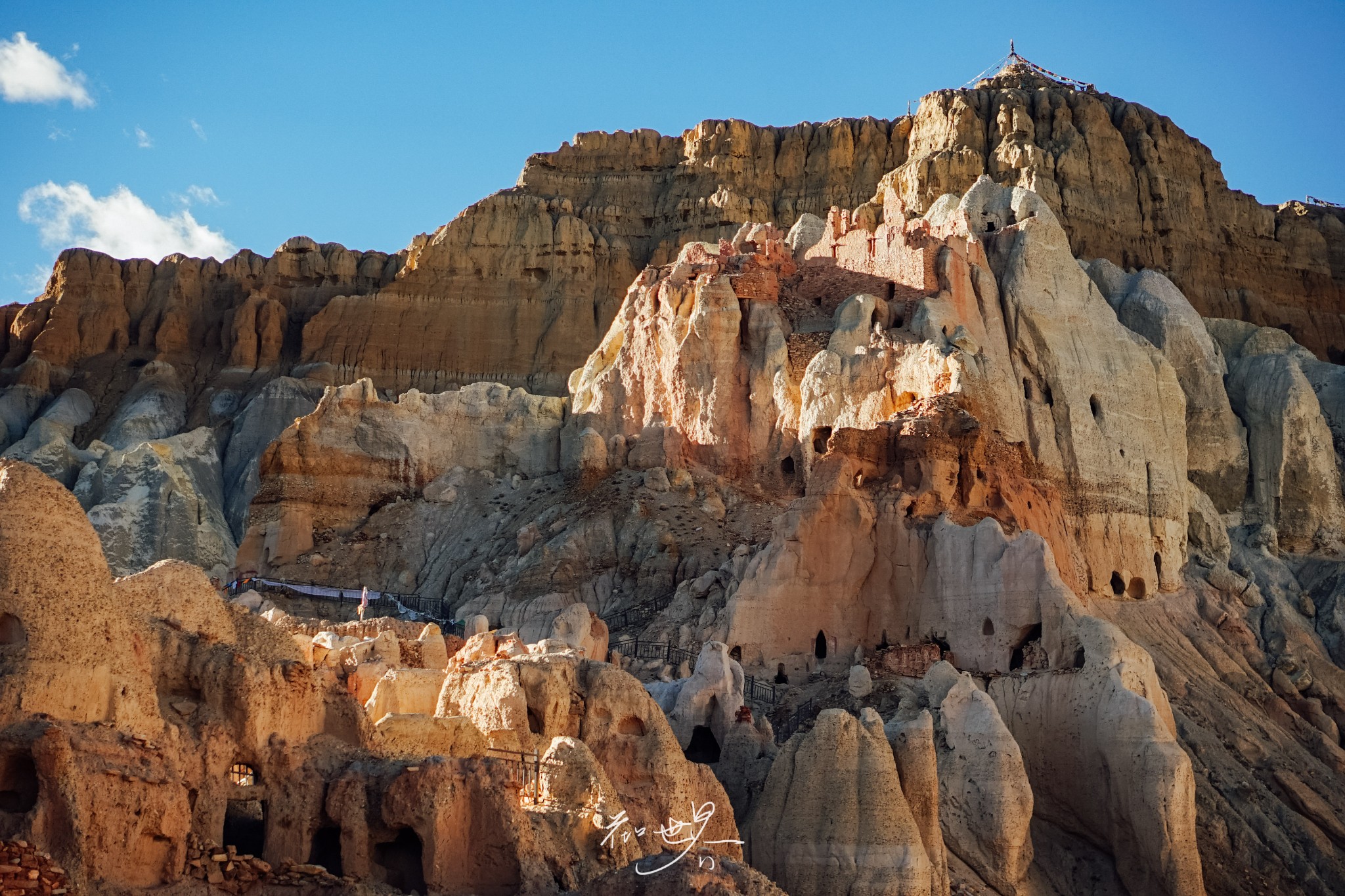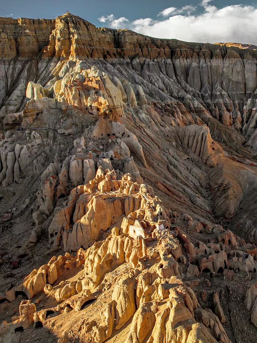 大大小小的洞窟覆盖整座山头,沿着山脊一路蜿蜒向上,身份越高则居住的洞窟就越高,依次从最下方的奴隶到中间的平民再到最高处的国王、贵族和僧侣。