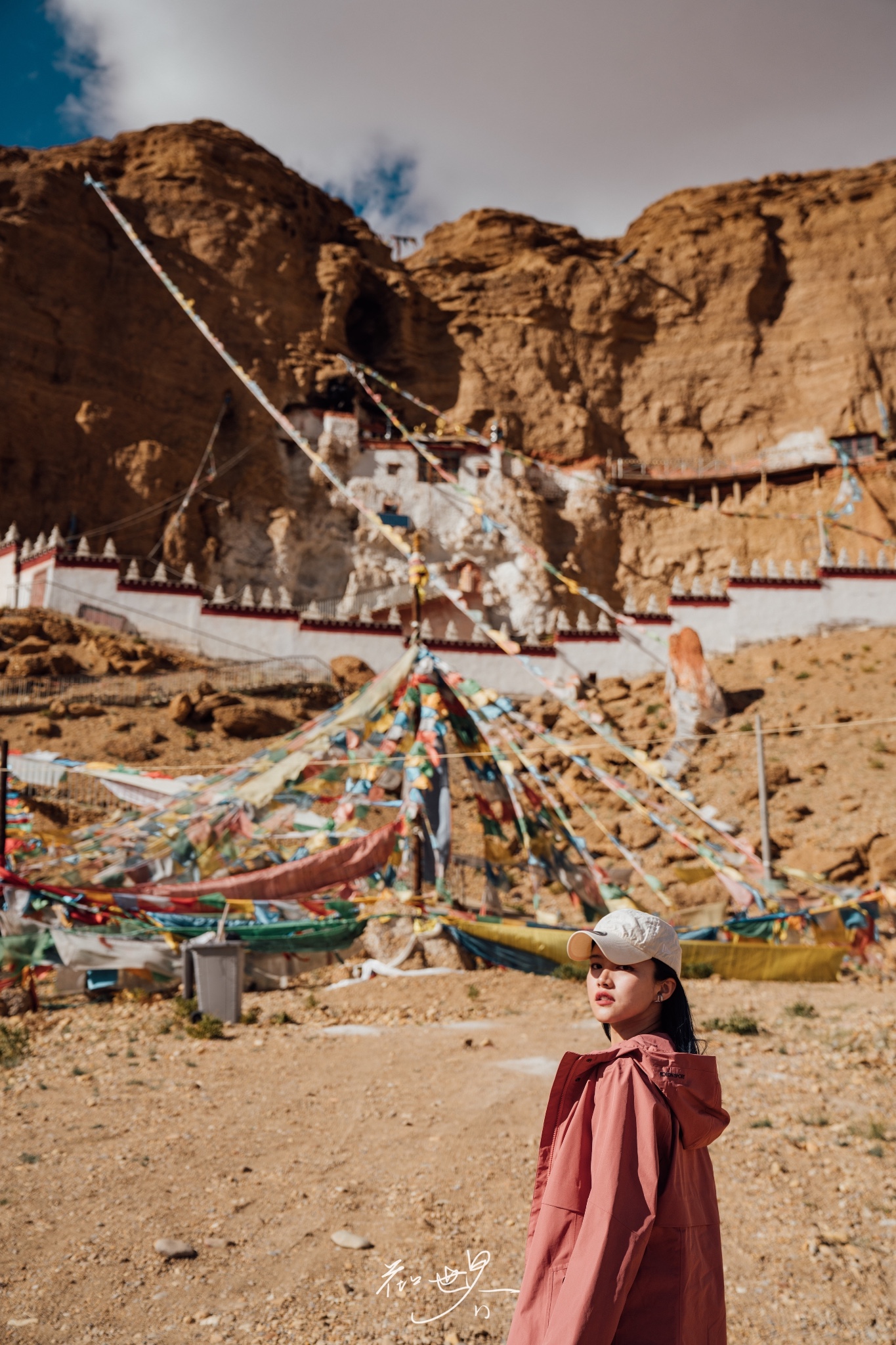 在前往探索穹窿银城的路上,我们先遇到的是古如江寺——一座雍仲本教的寺庙。据考证,雍仲本教距今已有18000多年的历史,是古象雄王国时的古老教派。而象雄文明更是人类历史上最古老的文明之一,这更让这座嵌在山体里的白色寺庙带上一丝神秘的色彩。