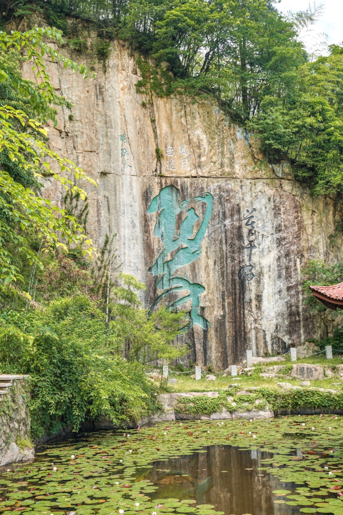 这里原本是一个废旧的采石场,当地人在此凿石成潭,又因为莫干山遍山翠竹,著名书法家钱君匋为此题写了“翠”字,镌刻于崖壁上,潭也因此得名。如今在这个硕大的“翠”字边上,也能看到许多书法名家曾留下的笔迹。
