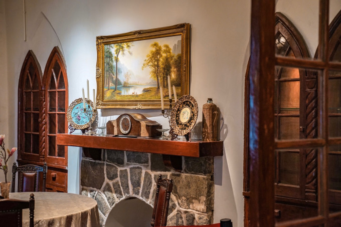 这是一座典型西式风格的别墅,半圆形的木窗、壁炉、油画陈列等都依样保留了下来。如今楼上保留了卧室和会客室,其他房间基本都作为展厅。