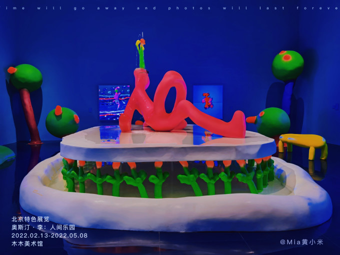 这个展览的配色非常鲜艳。展厅中央是一个名为“放松喷泉”的艺术装置,高饱和度和极具个性的造型给场景增添了一些超现实的感觉。
