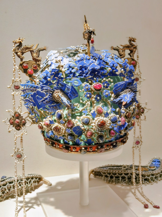 这里的展品都是故宫博物院收藏的清代宫廷珍宝,用金、银、玉、翠、珍珠及各种宝石等名贵材质,并征调各地著名匠师设计制造,每一件都称得上是国之瑰宝。