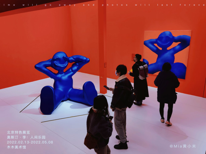 二层的放松房间人气很旺,这里有一个蓝色小人雕塑。不同于喷泉小人的高高在上,只见它坐在地上,双手抱头,一脸悠闲,很是自在。因此,吸引了很多小伙伴来合影,最受欢迎的展品非它莫属。
