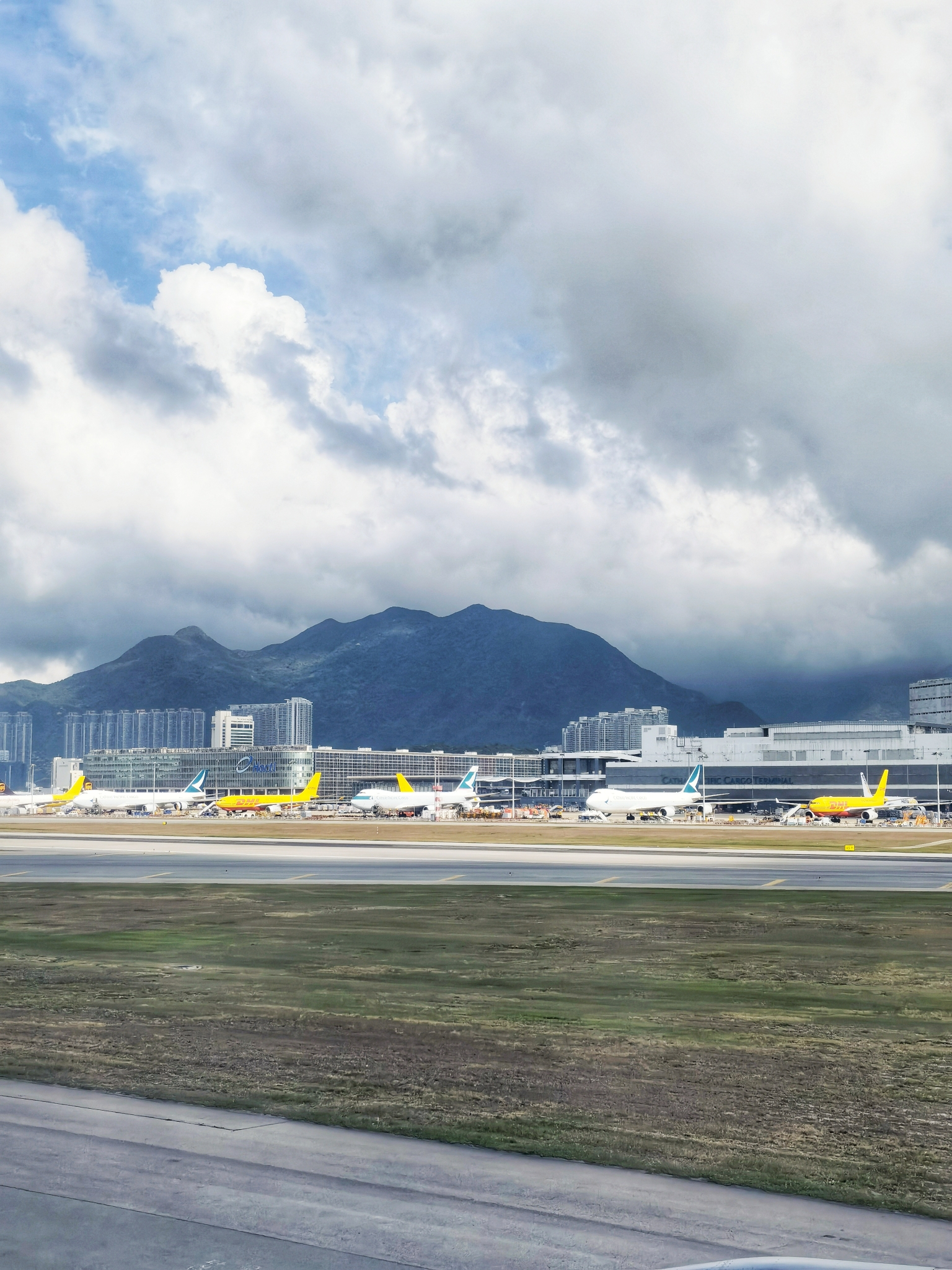 在不远处还停着若干架国泰的航班,虽然是疫情期间,但香港机场的繁忙程度还是要比大陆机场高一些