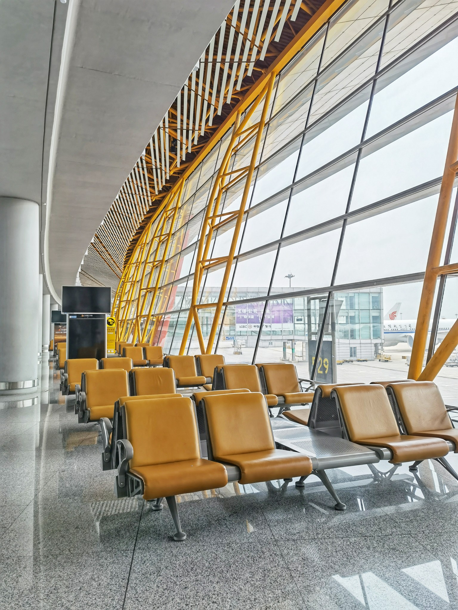 即使是凌晨出发的航班,我都没见过眼前这样的首都机场:空荡荡的出发大厅、没有乘客的座椅,甚至站在走廊中喊一声都能听到自己的回声