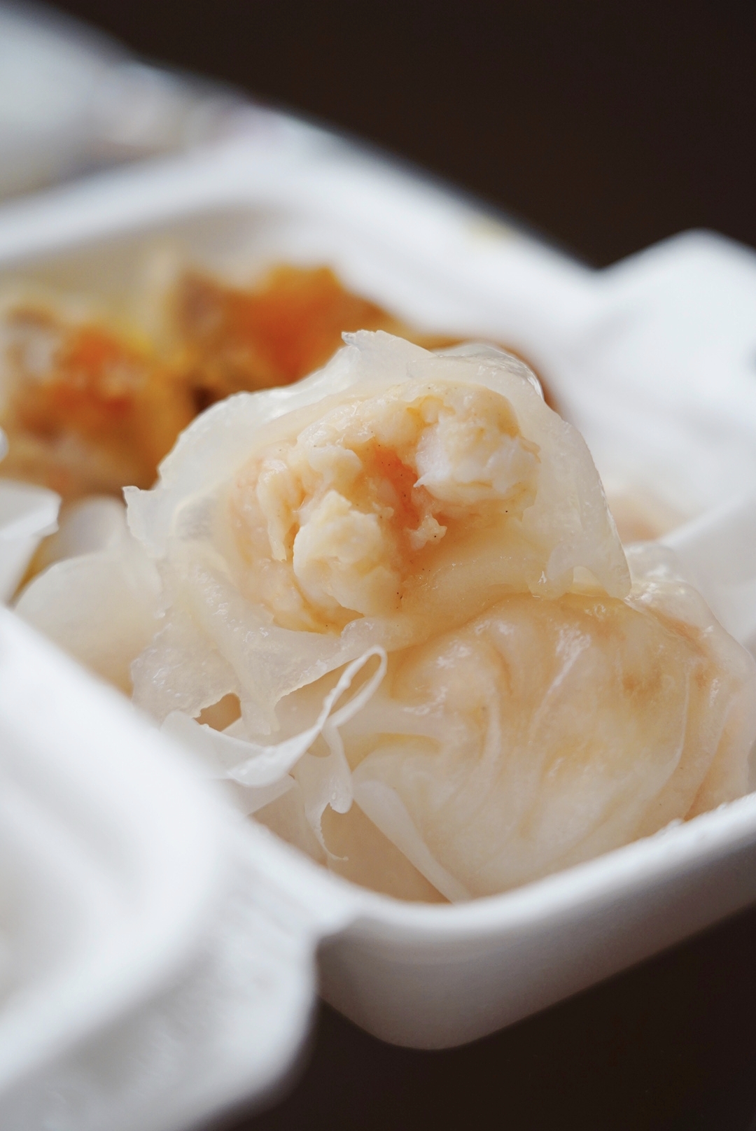 第一个夹起来的就是非常有视觉冲击的原只鲍鱼烧卖,鲍鱼的口感略微有些嚼劲,没有过多的调味,一整只烧卖里面全是又嫩又浓厚的肉馅,给料特别足,商家诚不欺我