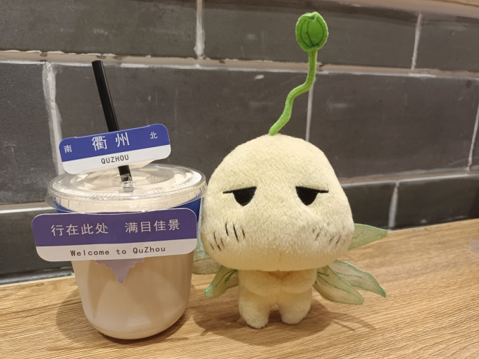 买了杯生椰拿铁23元。气泡水9块9,我想要带着衢州的牌子。好像气泡水也是有的。