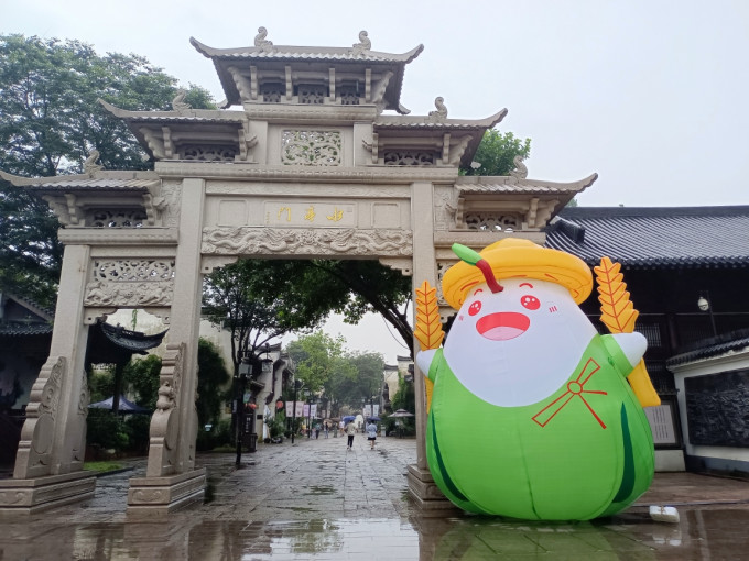 水亭门牌坊旁边的吉祥物