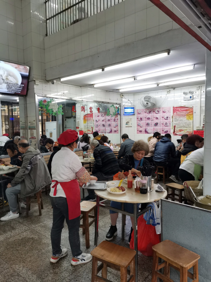 这家煲仔饭是我们在广州的第一顿当地餐,逛完永定坊,恰逢饭点,发现这家之前收藏的店就在永定坊去上下九的路上。骑着单车过去,一路上不禁感叹广州老城这些小街巷的烟火气与原生态,这里的店面自然不大,我们边骑边逛第一次竟然错过了,进到店里却也明亮,客人坐了十之八九,我们紧挨着收银台找了张小桌。