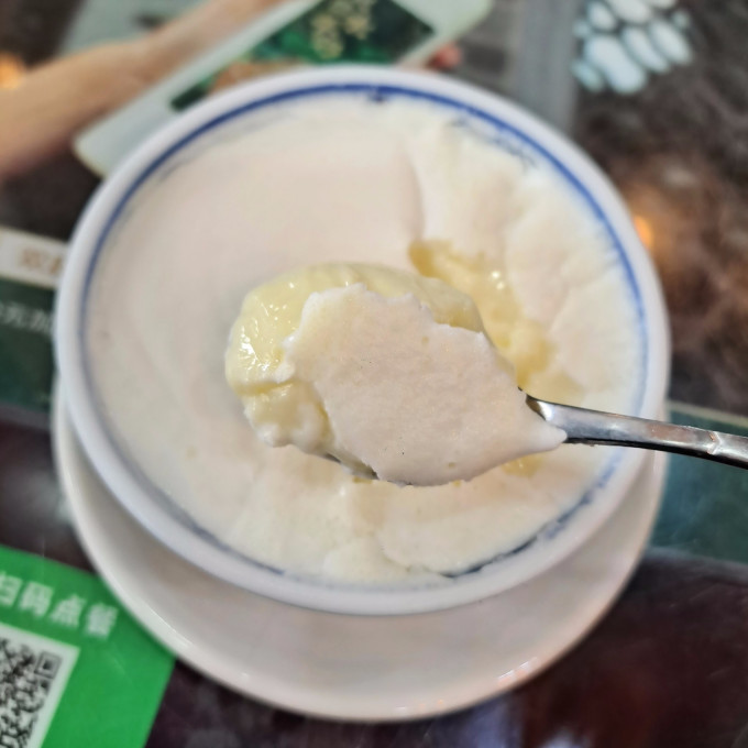 吃的时候,表面Q弹,奶香似乎都封于奶皮之下,舀起一勺,形不散而香气出,入口即化,清甜不腻,比我们在别处吃的好上太多,的的确确人间美味!