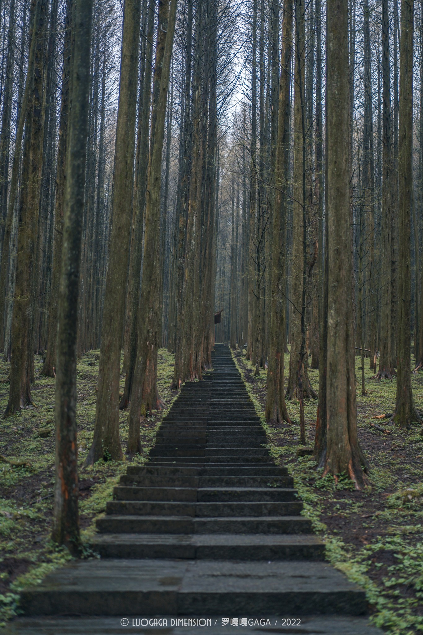 森林公园的路比较窄,周围都是茂密高耸的森林,偶尔路过延伸进密林深处的步道,上面布满青苔和掉落的枝叶,一看就很久没人走过了,这个场景跟此时此刻的小雨天倒是挺合拍。