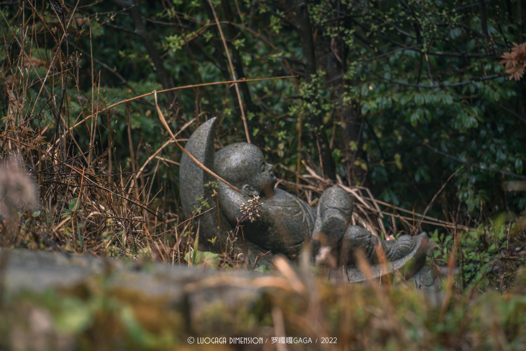 山上小湖边的观音像,也挂满了枯枝,支撑它的木台子看起来快要朽烂了。