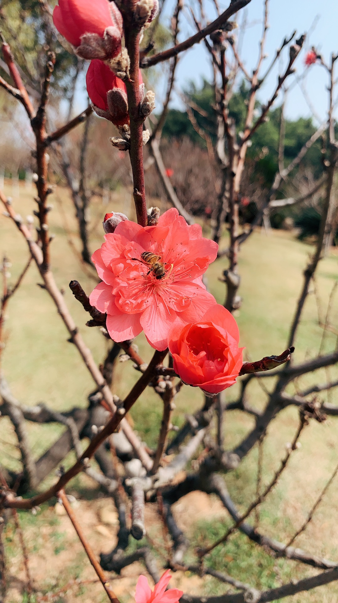 一阵轻快凉爽的风吹来,让人感觉到丝丝凉意,百花盛开的季节,当无数花洁如玉的花开放时,桃花也竞相开放。