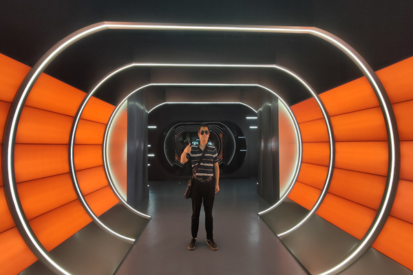 3、“云中漫步”只能带手机和眼镜,其余物品只能先寄存在探索仓。手机会被固定在一个透明口袋里,与身体相连,所以你可以通过透明口袋拍照,但无法将手机取出来。
