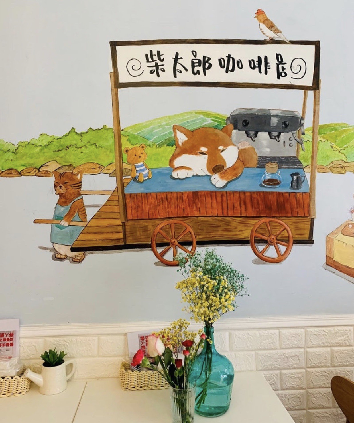 以柴犬为主题的咖啡店.咖啡店内有很多柴犬的摆设.照片和壁画.主要以店主养的柴太郎为主角.而它不时会在店内的阳台出现陪伴大家度过一个休闲的下午.