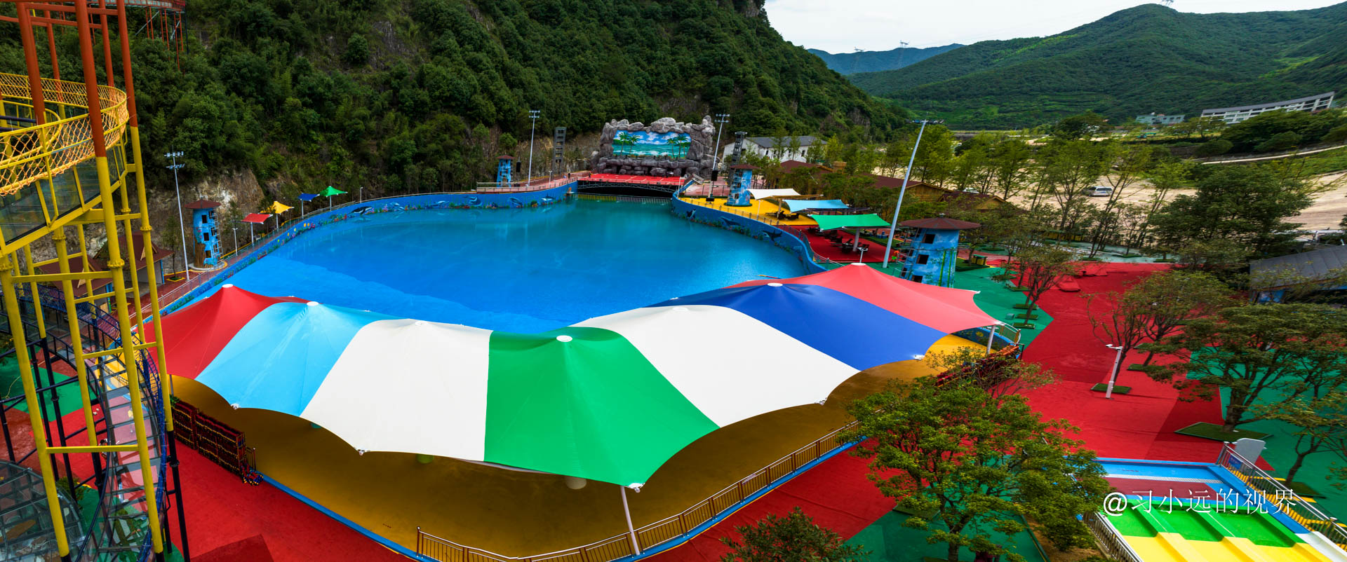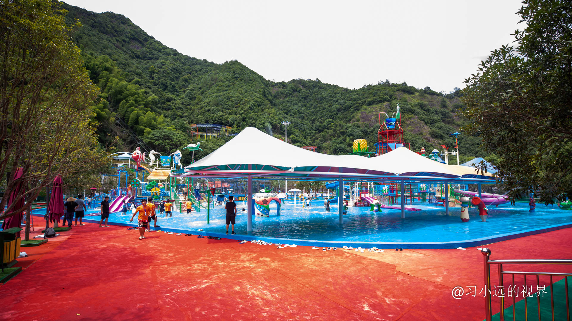 这家水乐园的地理位置倒是挺特别的,没有在闹市街区,也没有在江边海边,而是依山而建的,这也算是它的一个比较大的特点了,直到车子开进停车场,才算是感觉了这是一个面积不小的水乐园了。