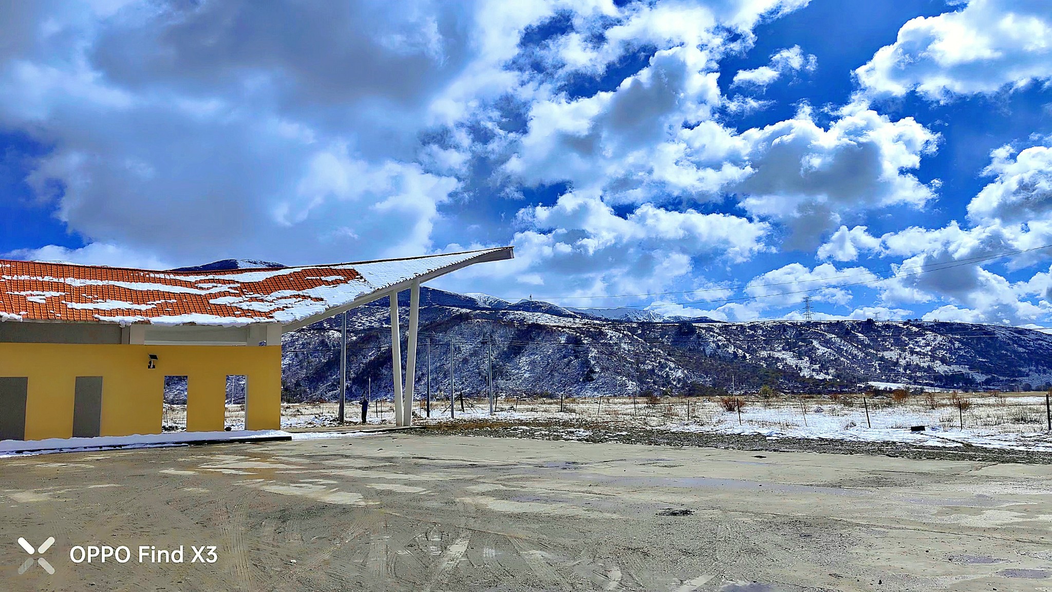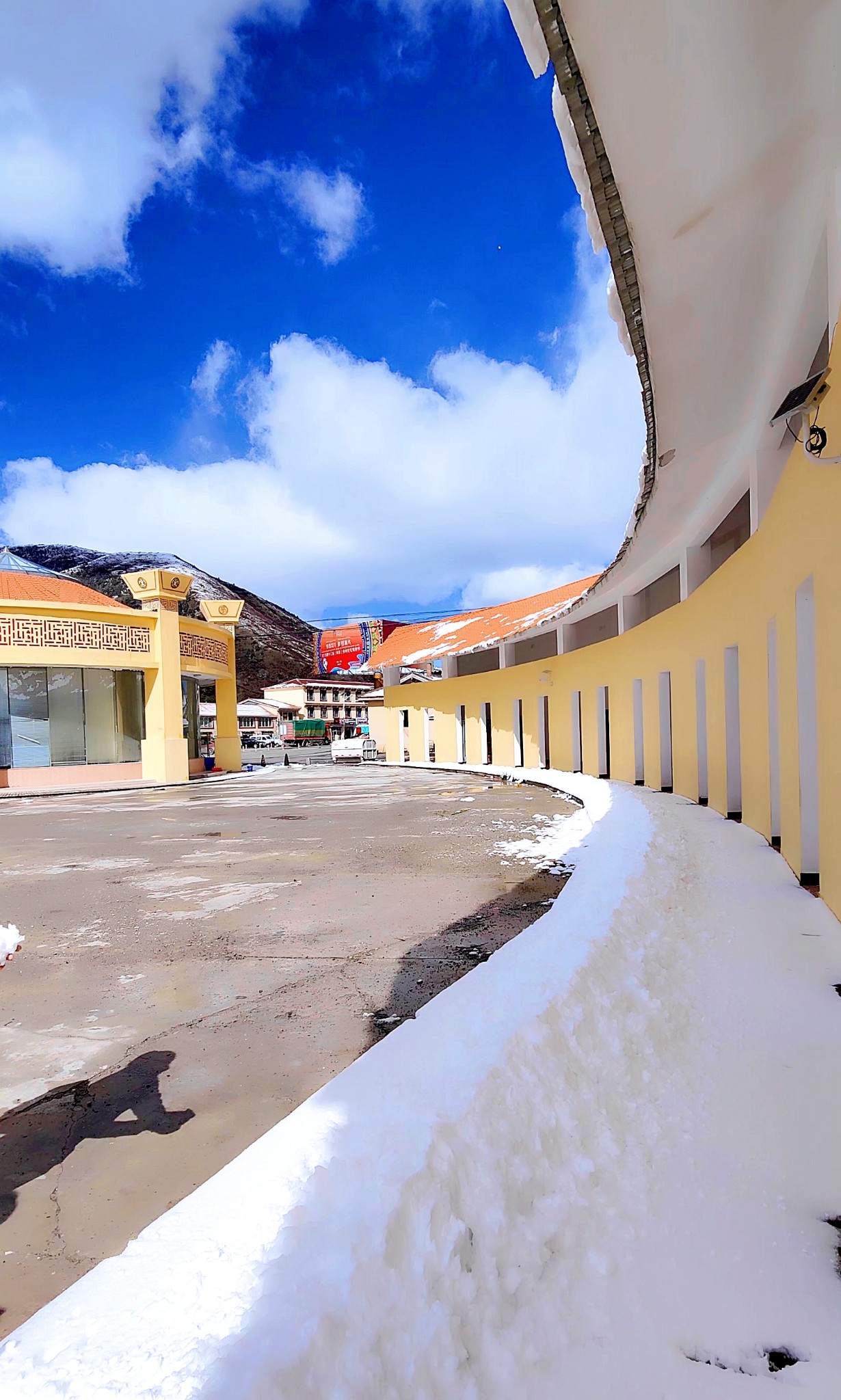 ▼服务区里屋檐下还堆积着厚厚的白雪。