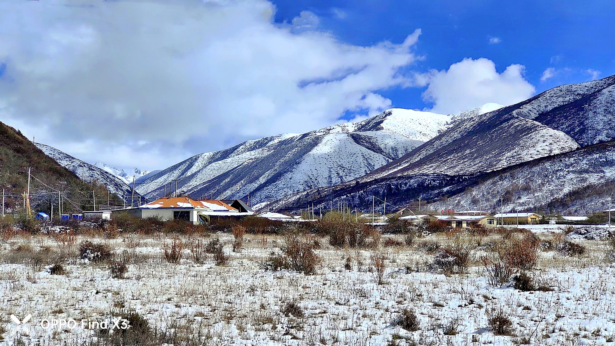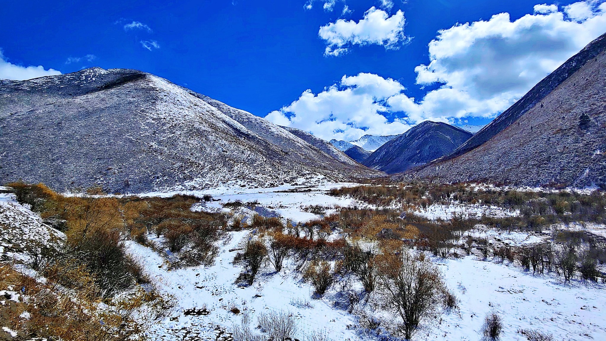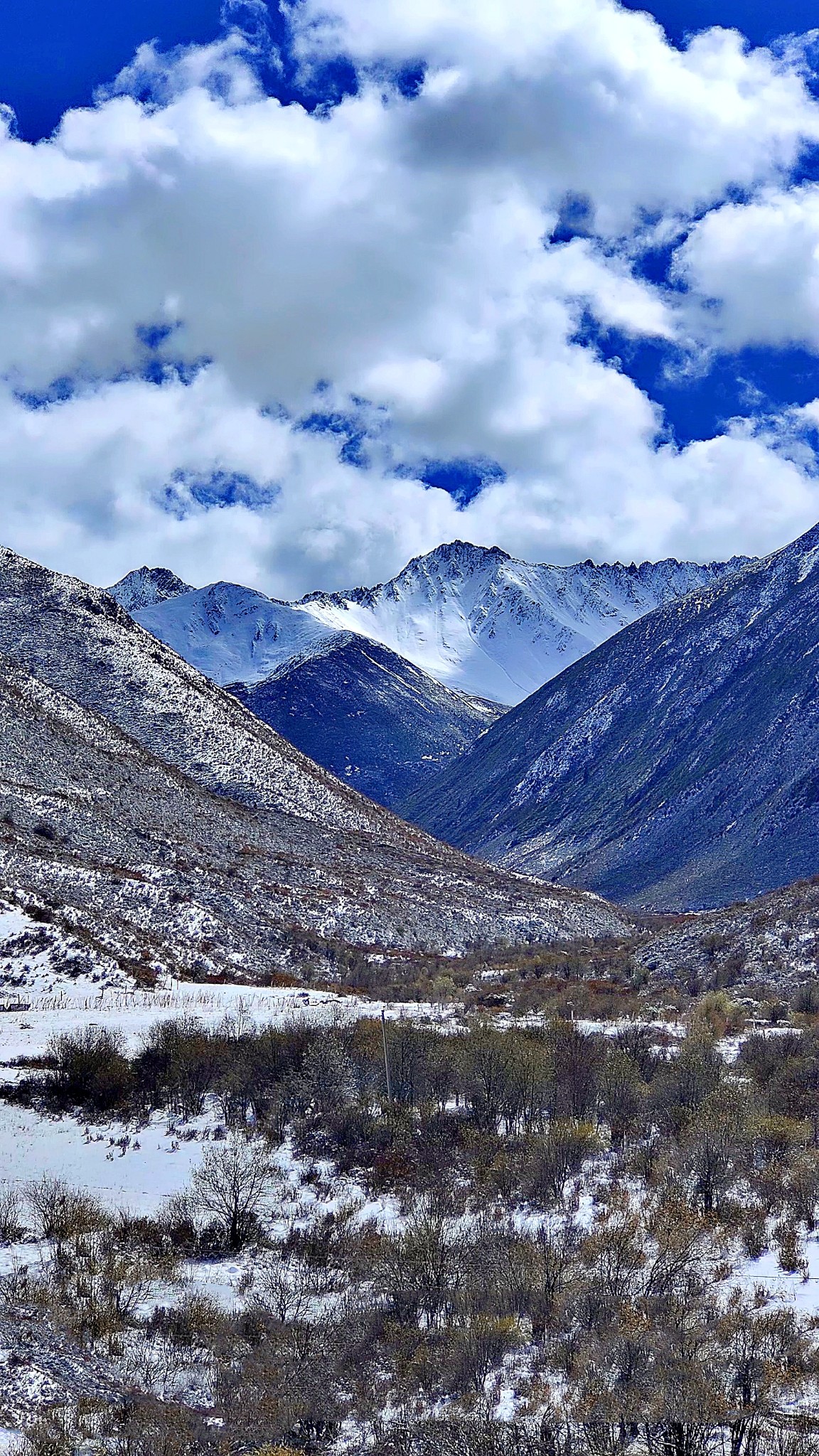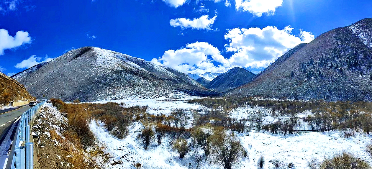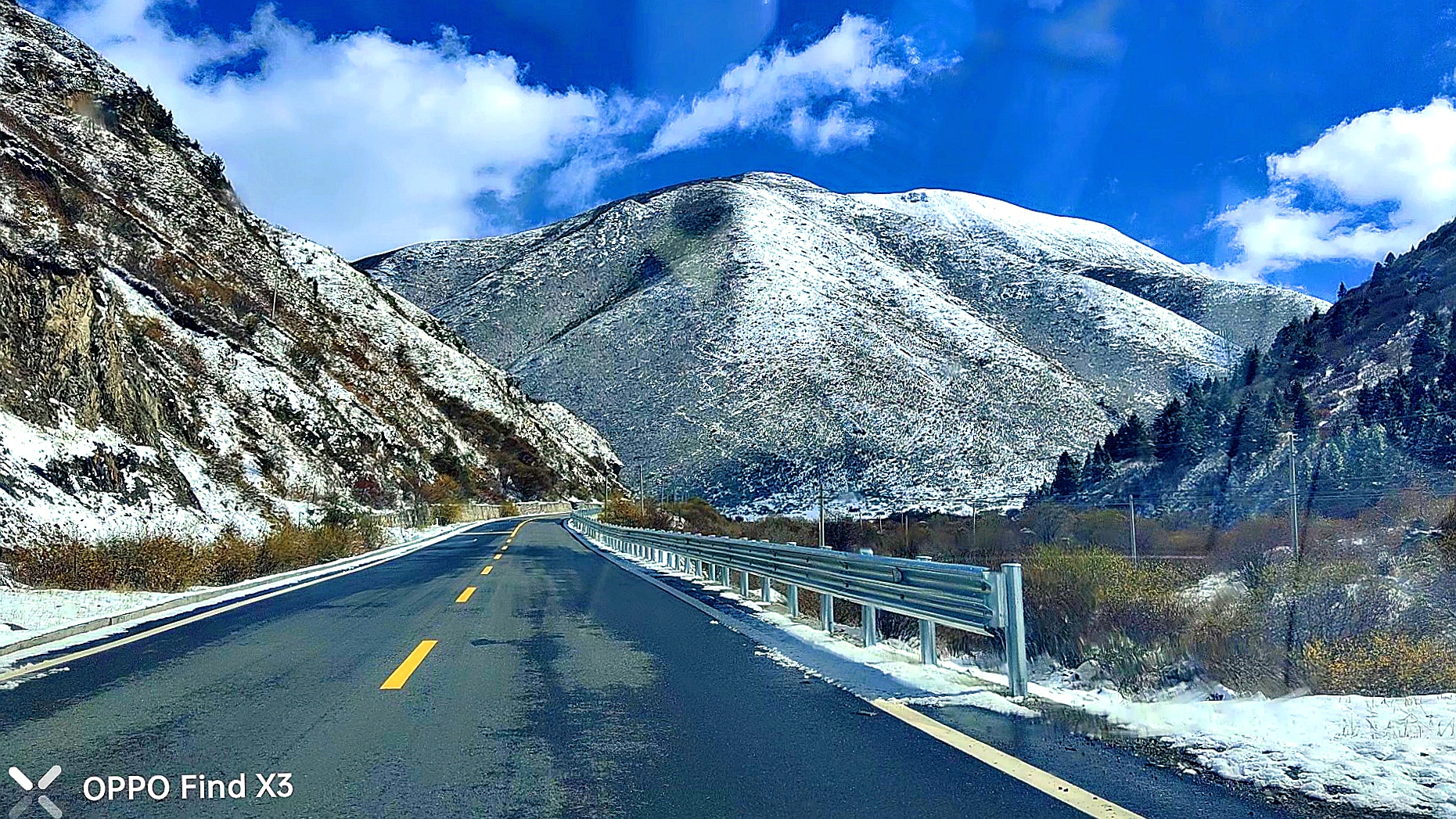 ▼沿G248国道前行,一路上只见蓝天白云下的高山草甸到处白雪皑皑,这路途美景就让人心旷神怡、目不暇接。